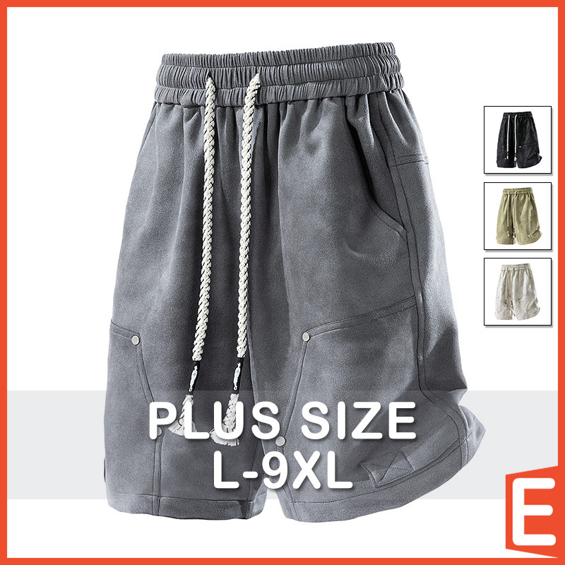 [L-9XL] Plus Size Shorts Men Casual Elastic Waist Drawstring Short Pants with Pocket Summer Streetwear Big Oversized Shorts