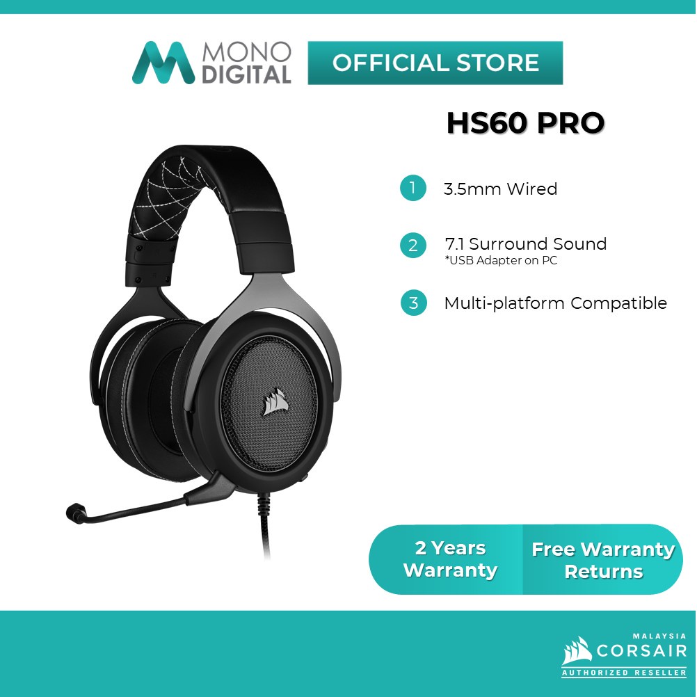Corsair HS60 Pro 7.1 Surround Sound Gaming Headset - Carbon/White