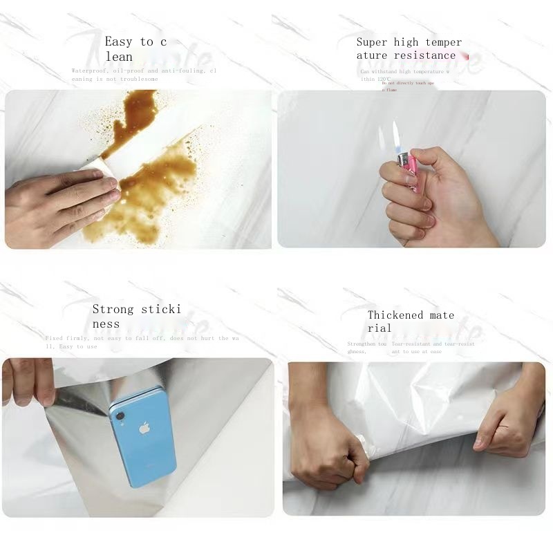 Ready Stock-Marble Pattern Kitchen Oil-Proof Sticker Aluminum Foil High Temperature Wallpaper Waterproof Self-Adhesive C wall paper dinding