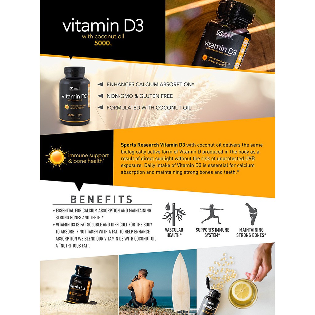 ⁑ᴘʀᴇ-ᴏʀᴅᴇʀ⁑ Sports Research Vitamin D3 5000iu with Coconut Oil, 360 Mini Liquid Softgels - Bone,Joint ⁑ᴏʀɪɢɪɴᴀʟ ғʀᴏᴍ 🅄🅂