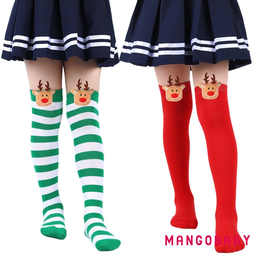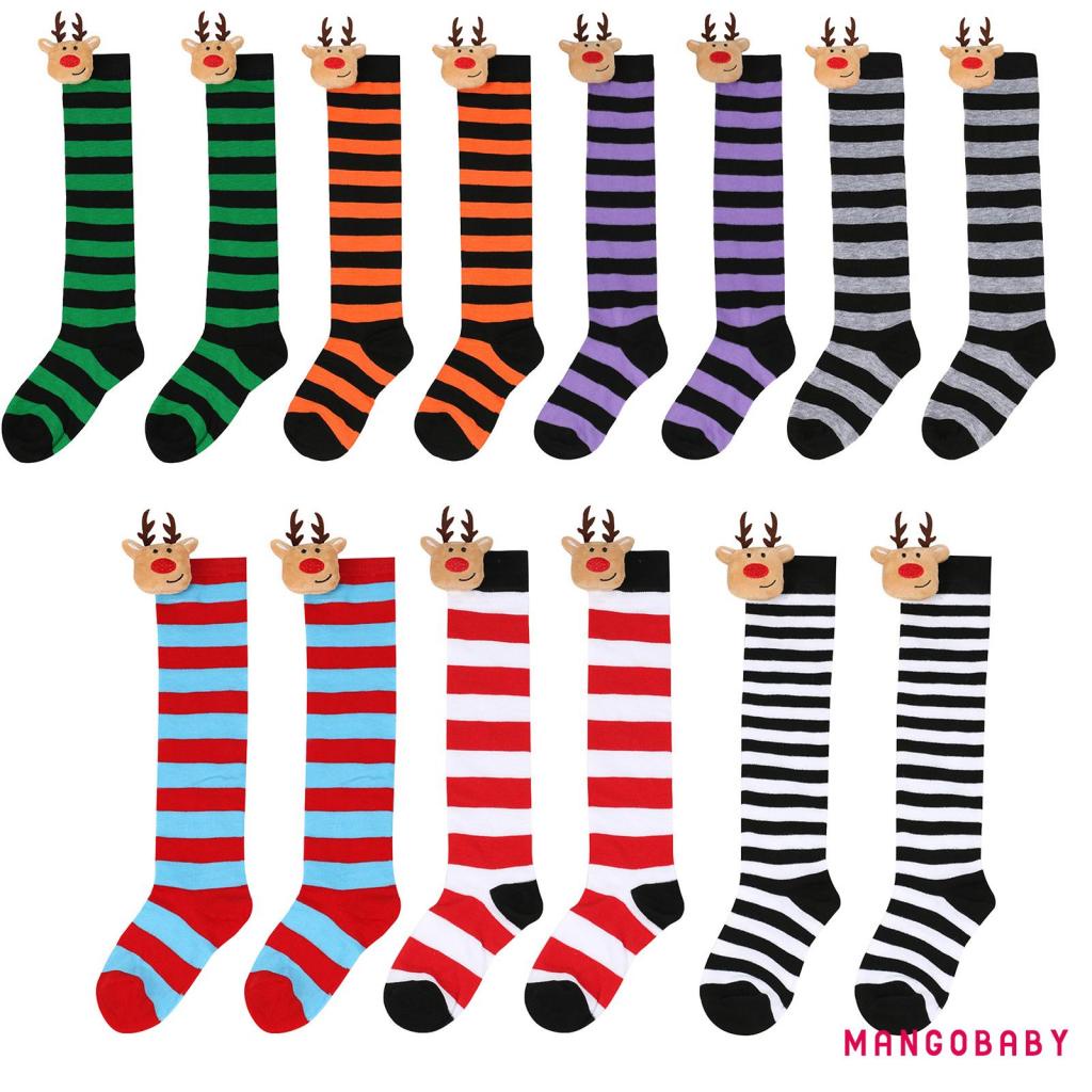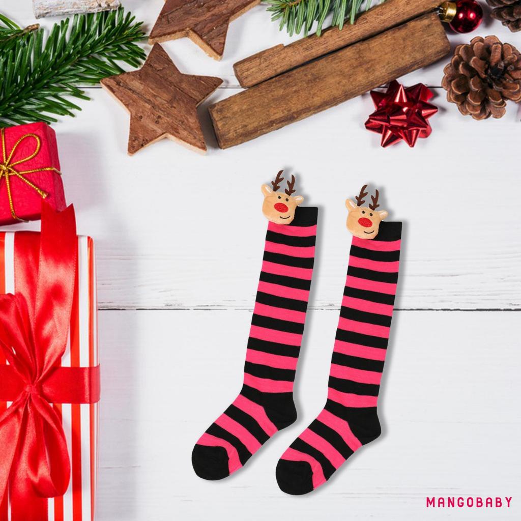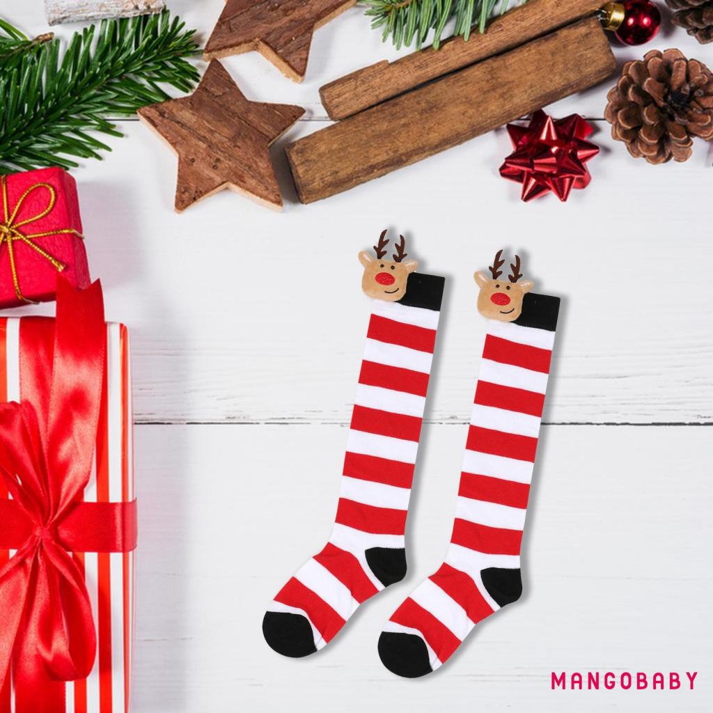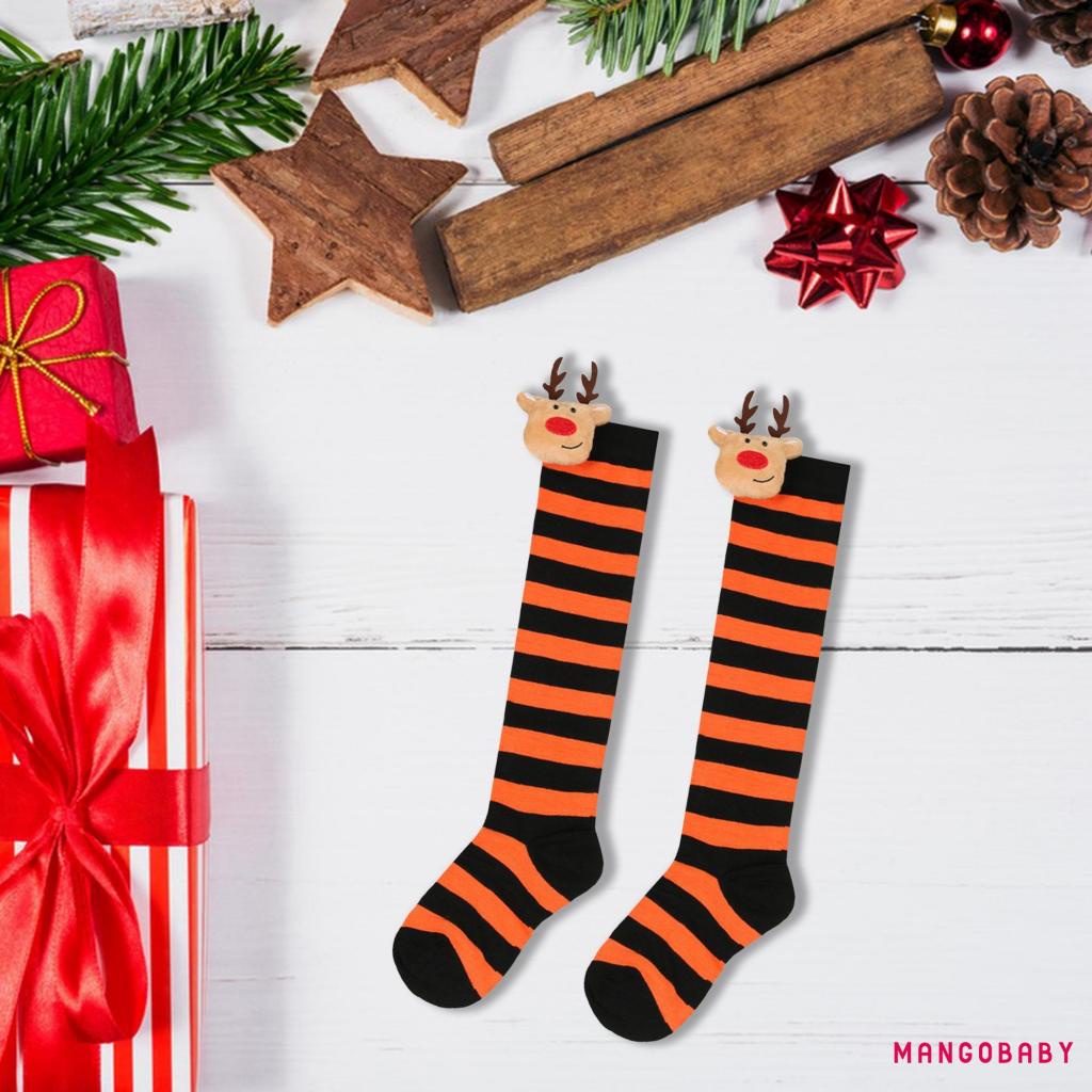 MANGO-Kids Toddler Christmas Striped Socks Soft Breathable Cute Elk Doll over the Knee Socks Elastic Stockings for Baby