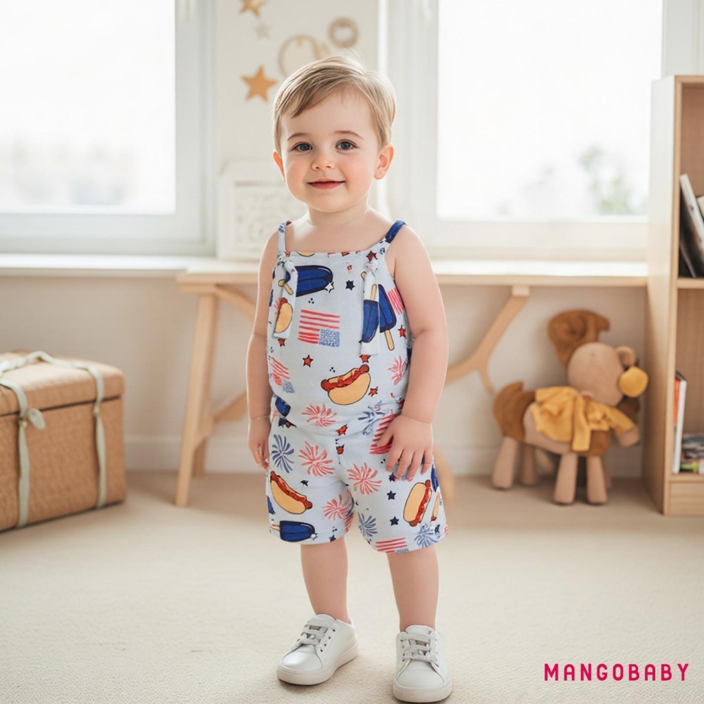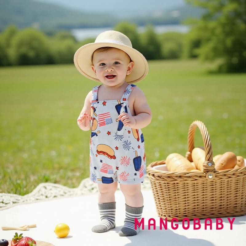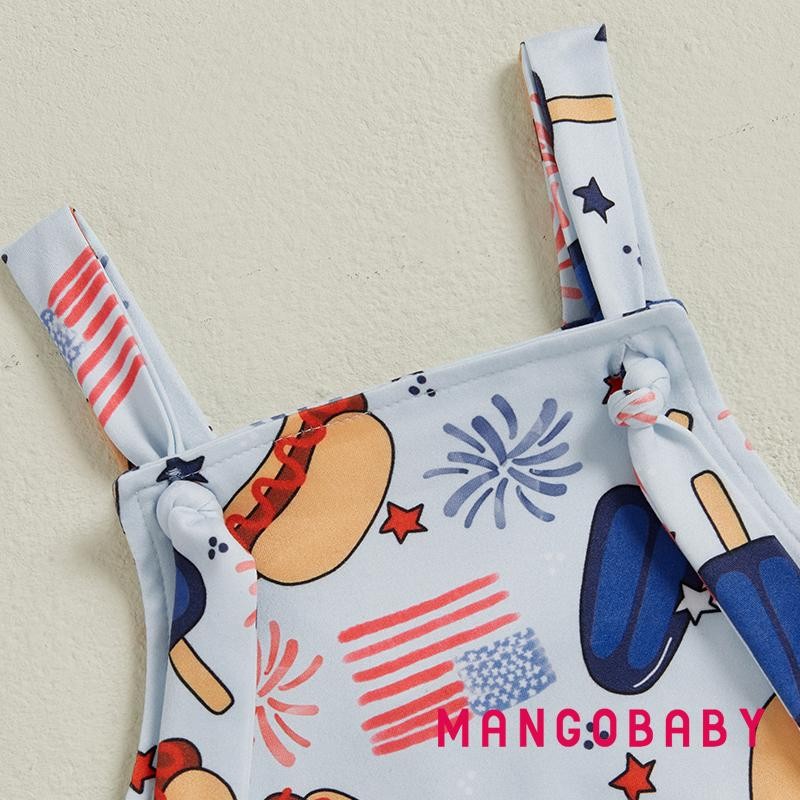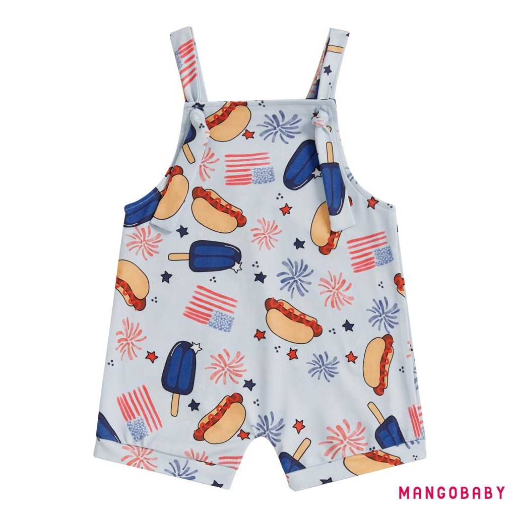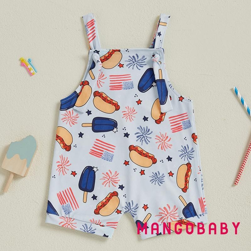 MANGO-Baby Boys Rompers Independence Day Clothes Flag Fireworks Print Summer Sleeveless Overalls Bodysuits Jumpsuits