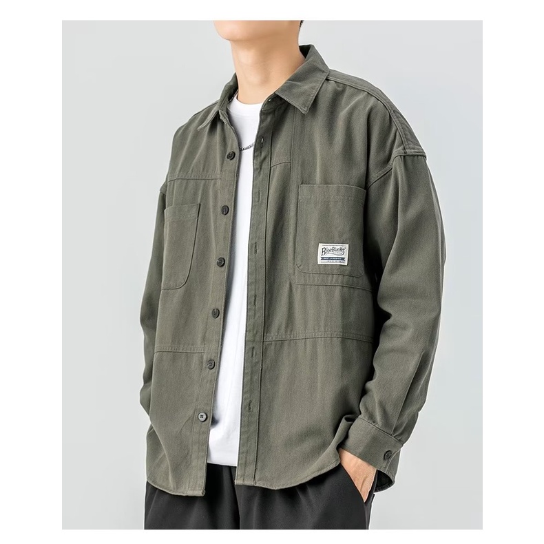 M-8XL Plus Size Shirt Men Fashion Vintage Cargo Shirt Long Sleeve Casual Loose