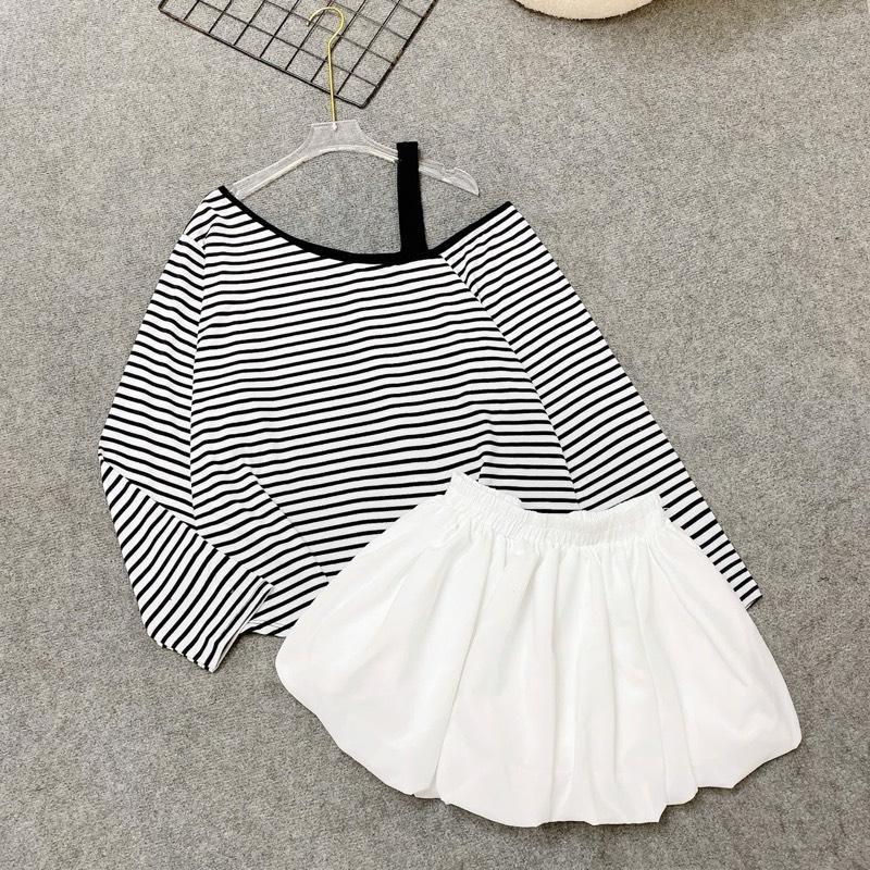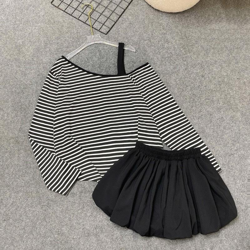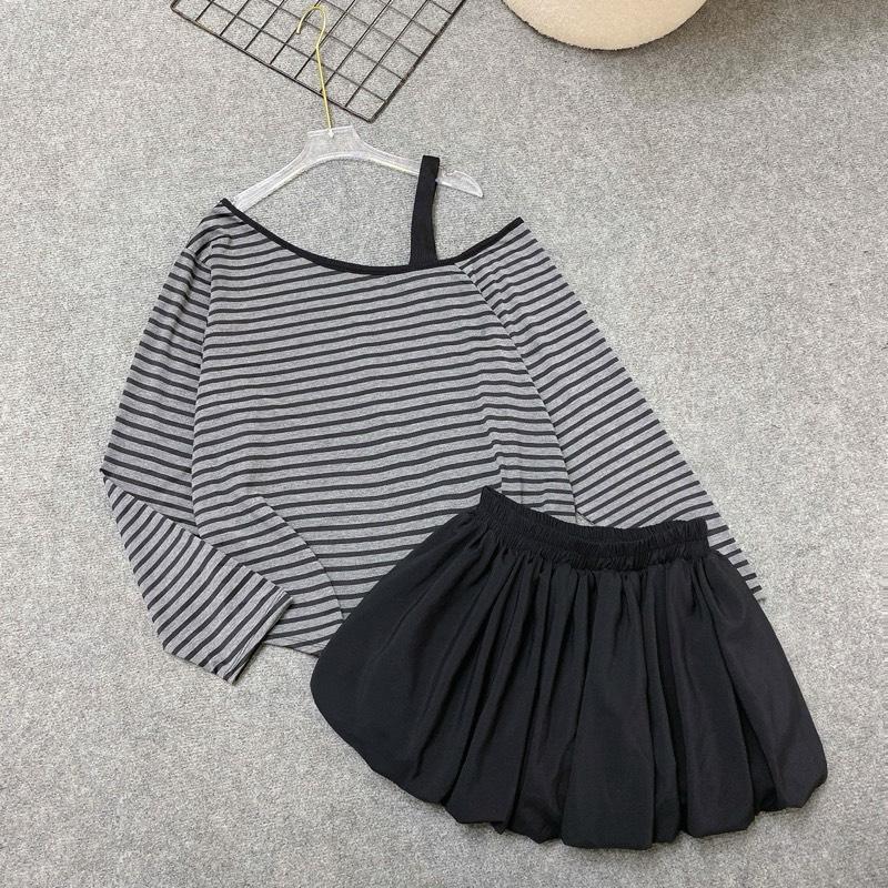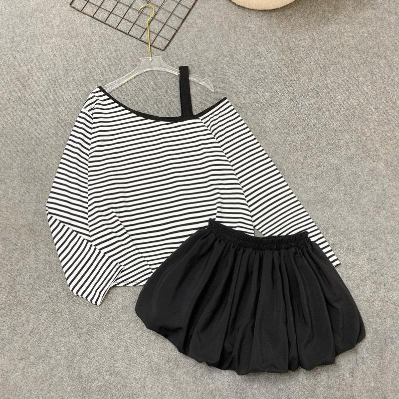 Set Big Size Women's Plaid Off Shoulder Top with Protective Skirt in Stretch Fabric for Cute Wear - SET(A319+CV413)
