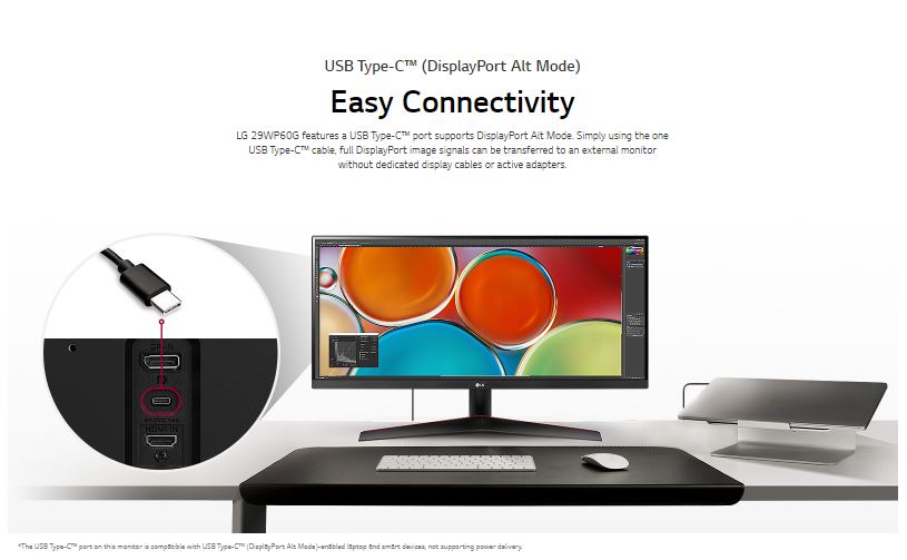 LG 29" 29WP60G FHD HDR FreeSync UltraWide Monitor with USB Type-C