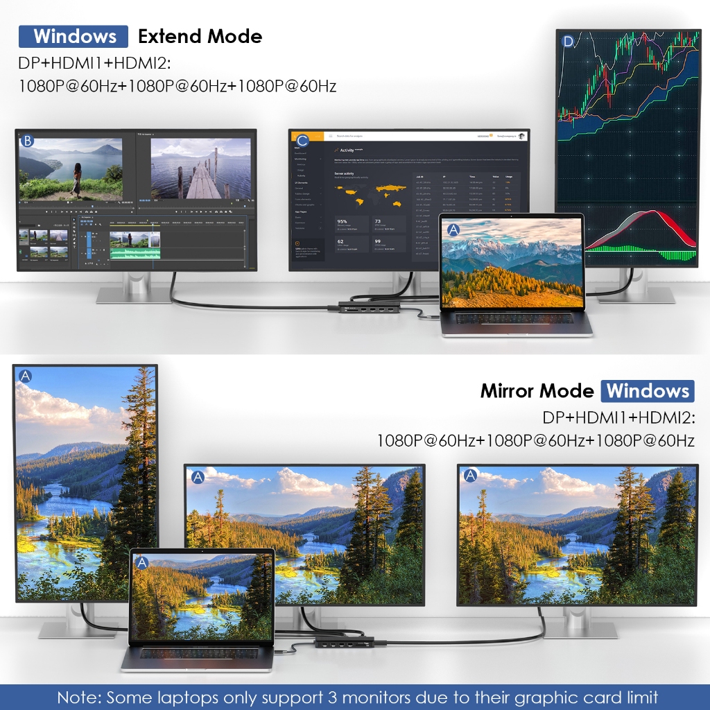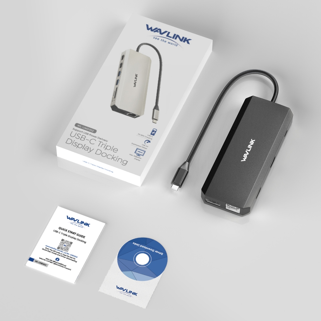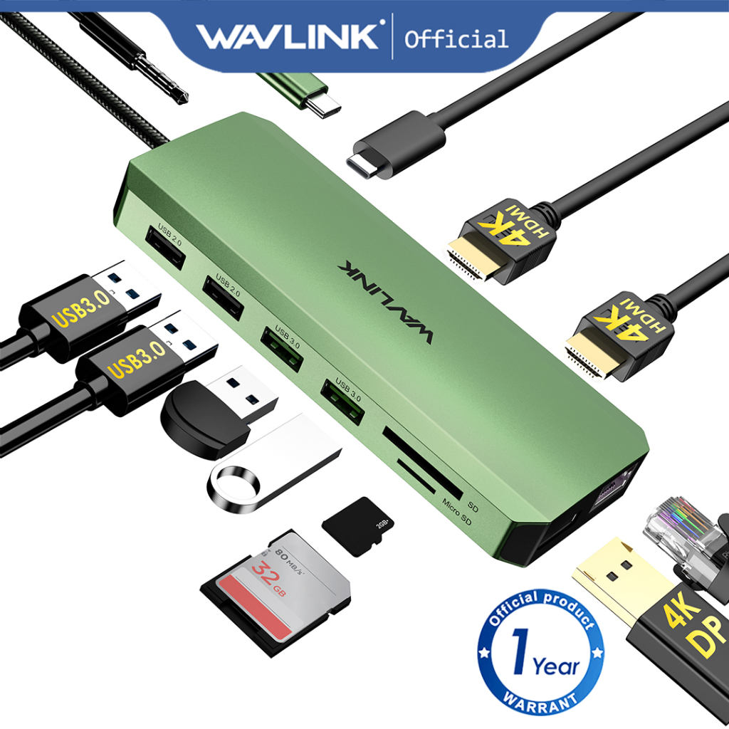 WAVLINK USB C Hub Triple Monitor 12 in 1 Laptop Docking Station Multiport Adapter with Dual 4K HDMI DP 100W PD 5Gbps UMD302-B