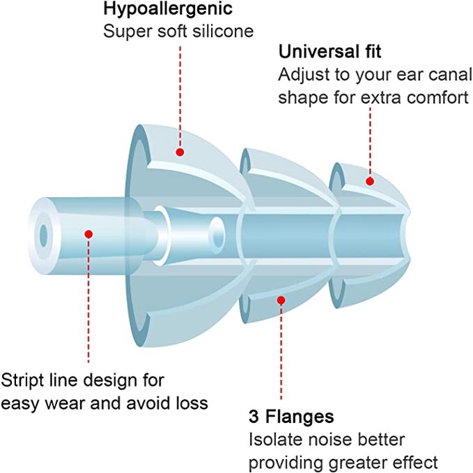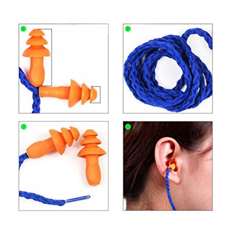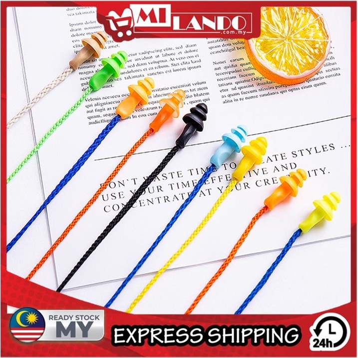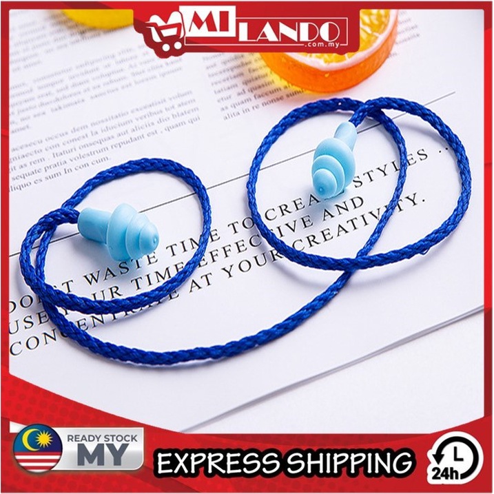 (1-pair) MILANDO Travel Ear Plug Silicone Waterproof Noise Reduction Ear Plugs With Rope 耳塞 (Type 1)