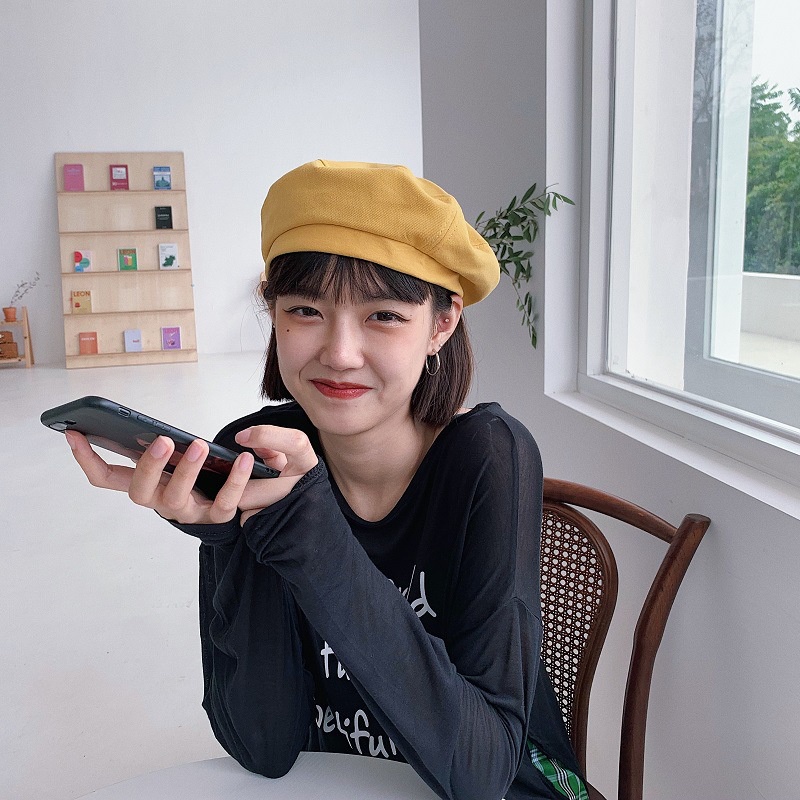 Fashion Color Beret Japanese Retro Thin Painter Hat Net Red Korean Version Tide Spring and Summer Black Women's Versatile Hat