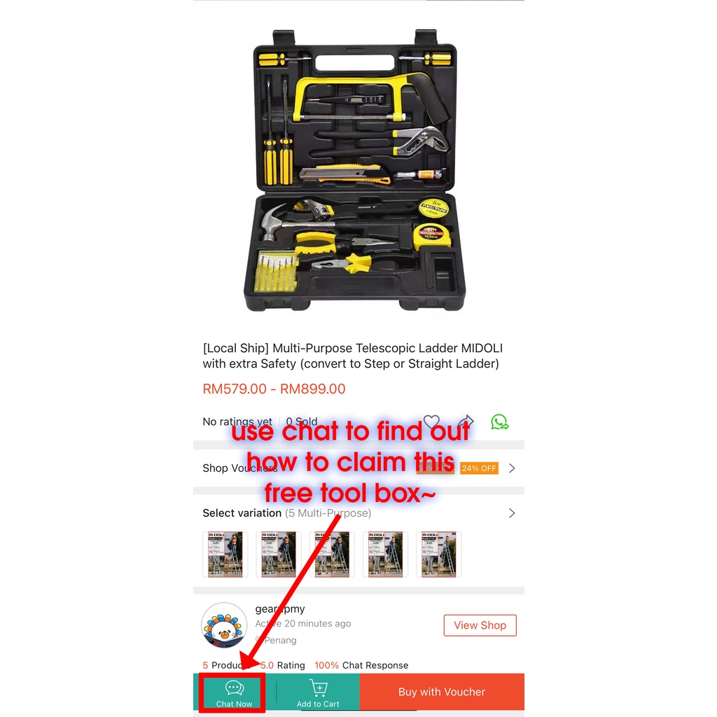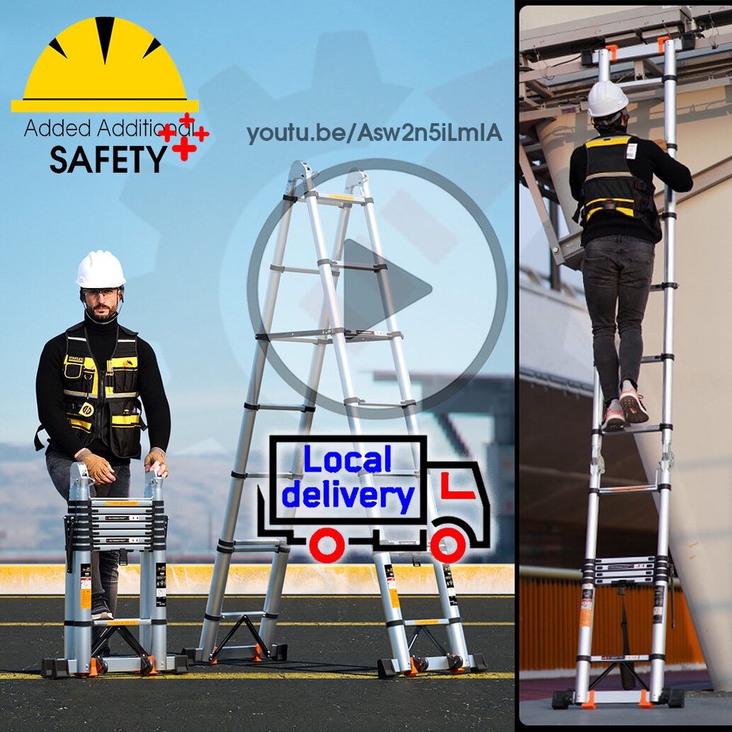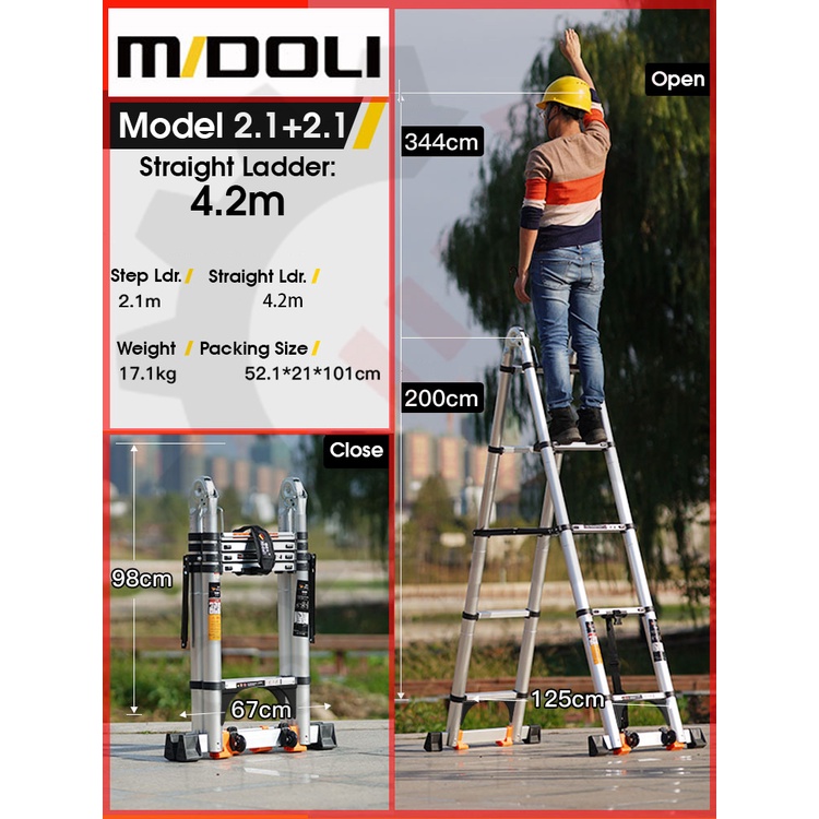 4.2m (2.1+2.1) Multi-Purpose Telescopic Ladder MIDOLI with extra Safety (convert to Step or Straight Ladder)