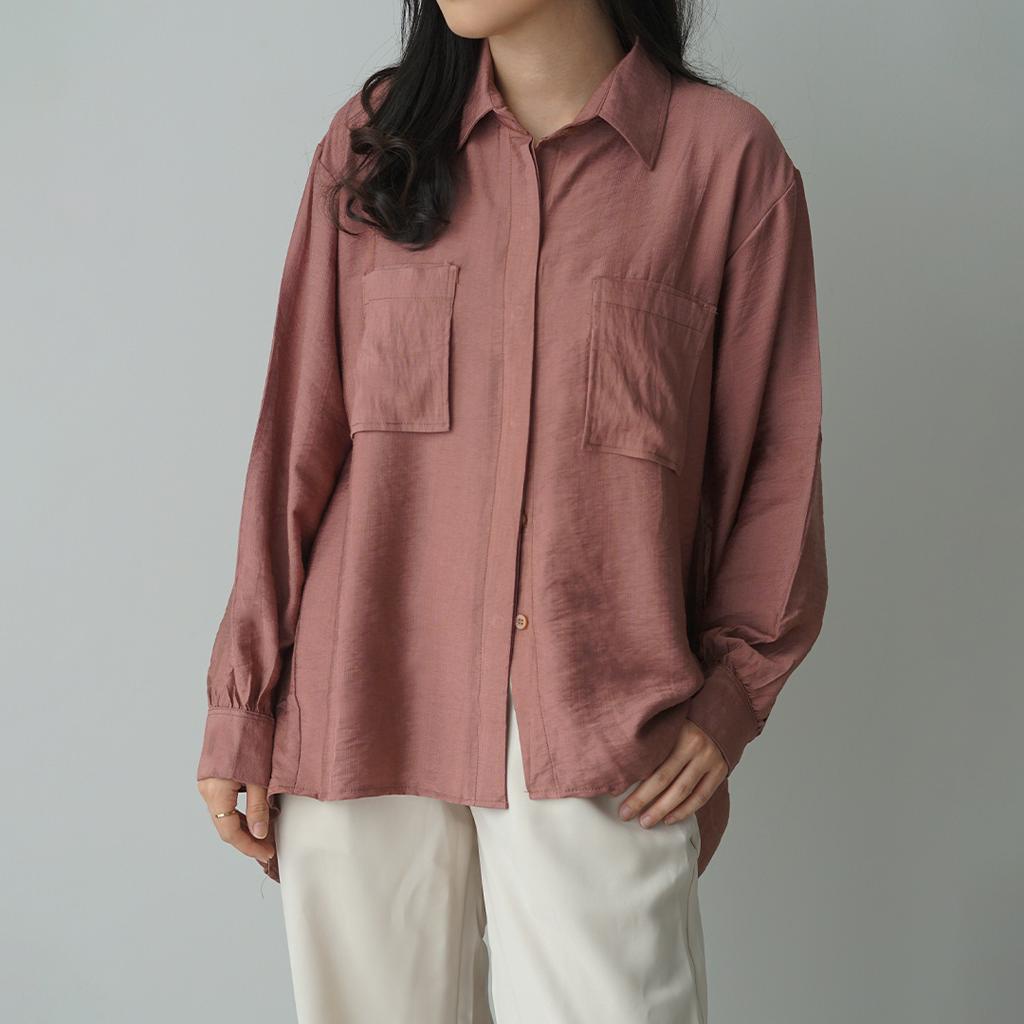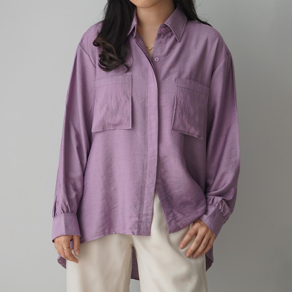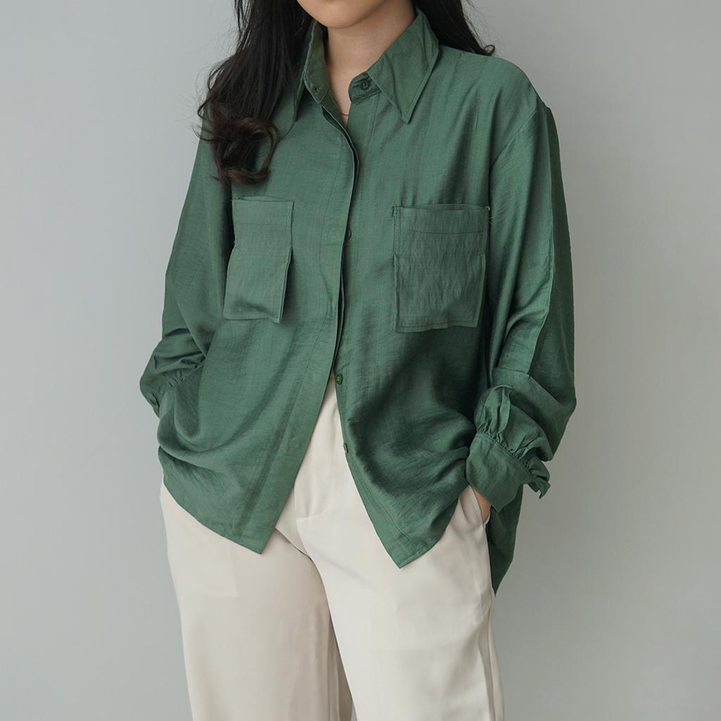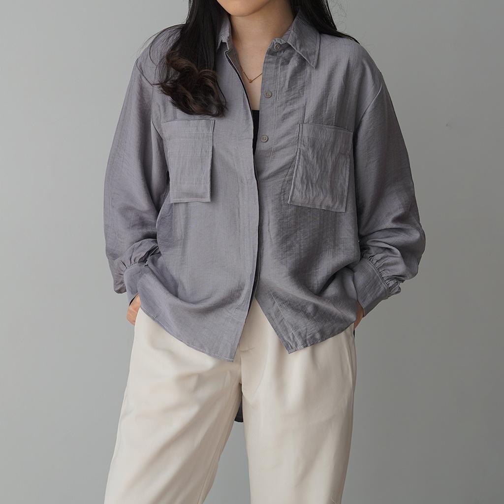 KEMEJA Milka Double Pocket Linen Shirt [SHU STUDIO] Women's Shirt Plain Long Sleeve Women's Blouse Top