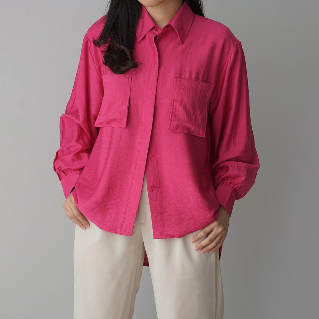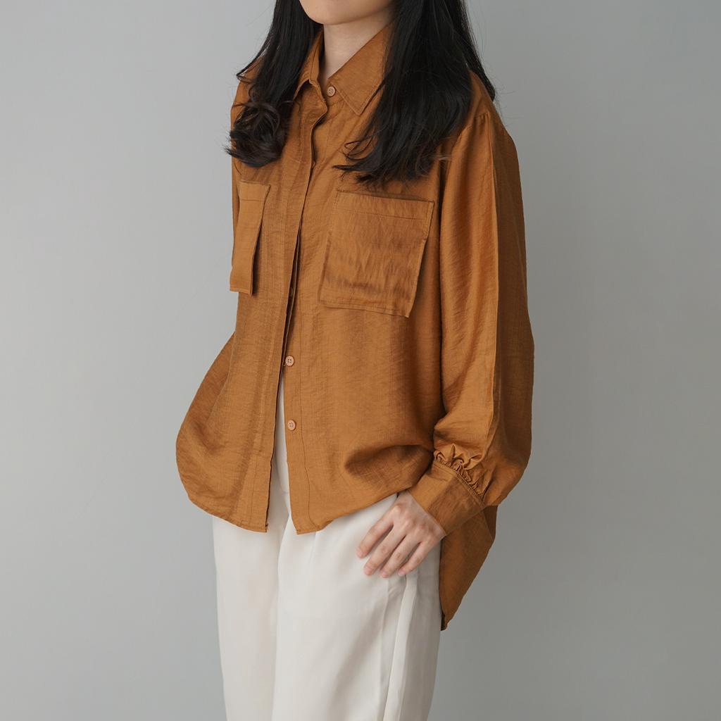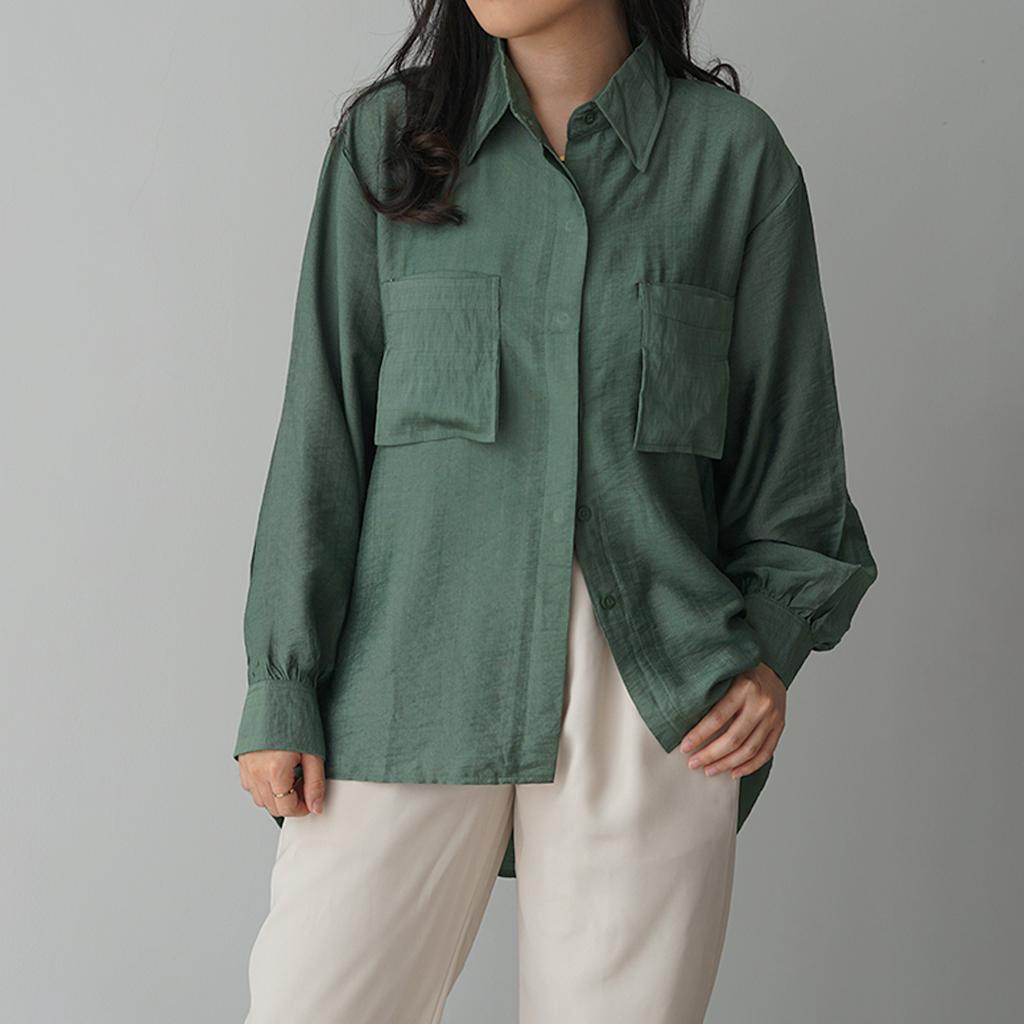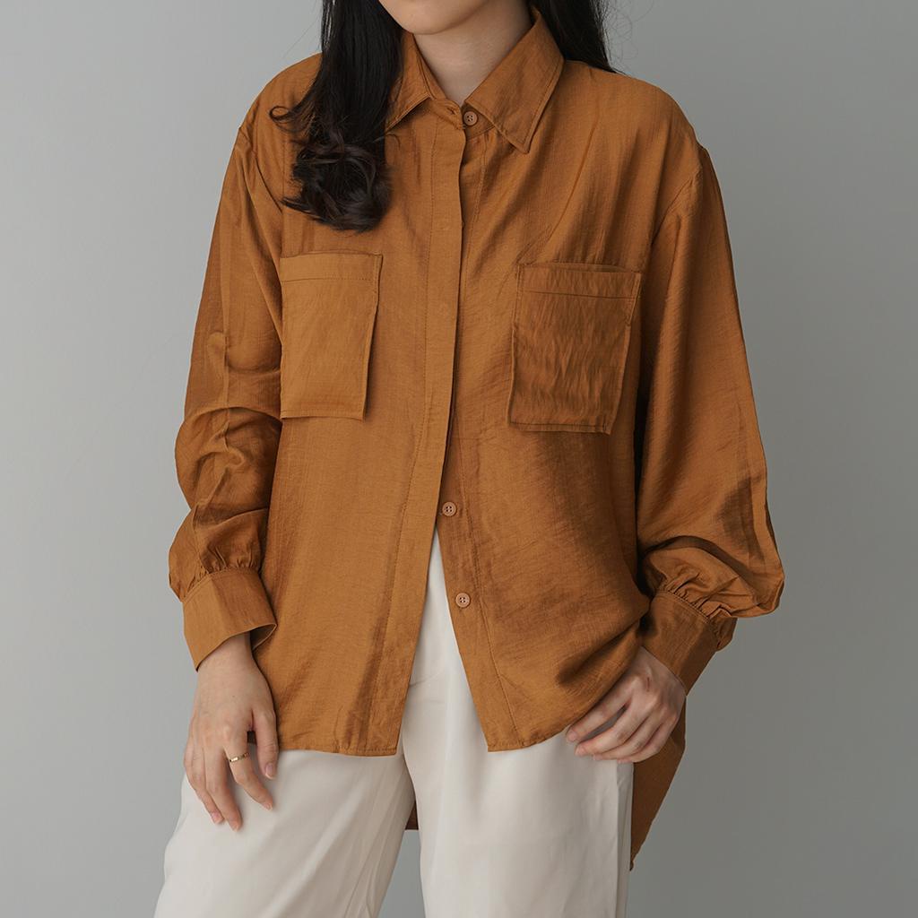KEMEJA Milka Double Pocket Linen Shirt [SHU STUDIO] Women's Shirt Plain Long Sleeve Women's Blouse Top