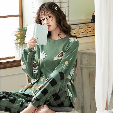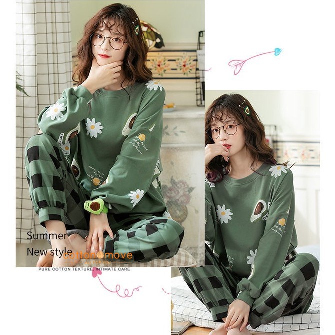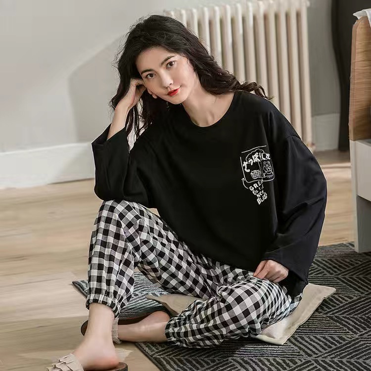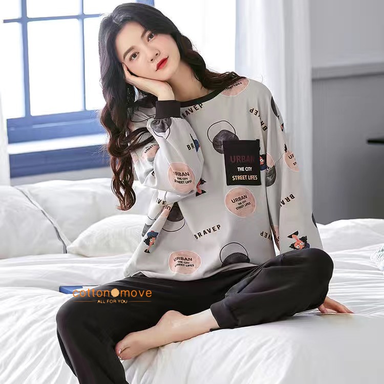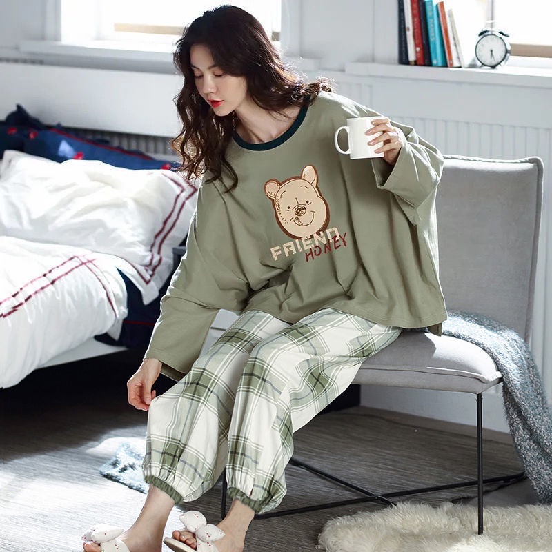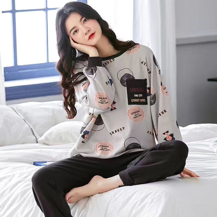Pajamas women M-5XL large size spring and autumn long-sleeved loose cartoon sweet and cute home clothes two-piece set*//Pajamas women M-5XL large size spring and autumn long-sleeve