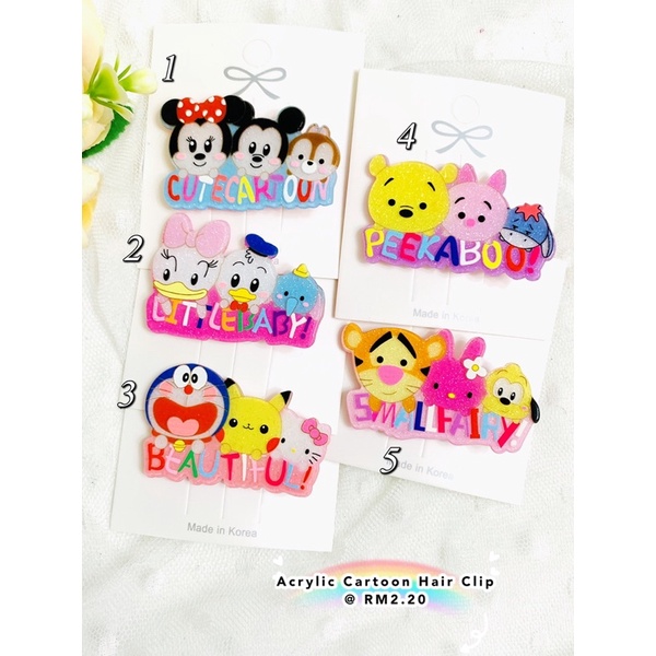 READY STOCK(C25) Children’s Acrylic Cartoon Hair Clip/ Minnie/Doraemon/Pooh/Kids Hair Accessories/亚克力卡通儿童发夹/发饰