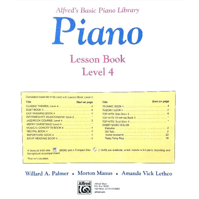 Alfred's Basic Piano Lesson Book Level 4 (Free shipping)