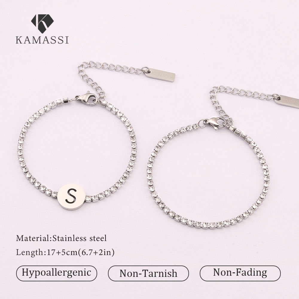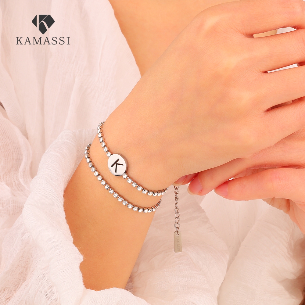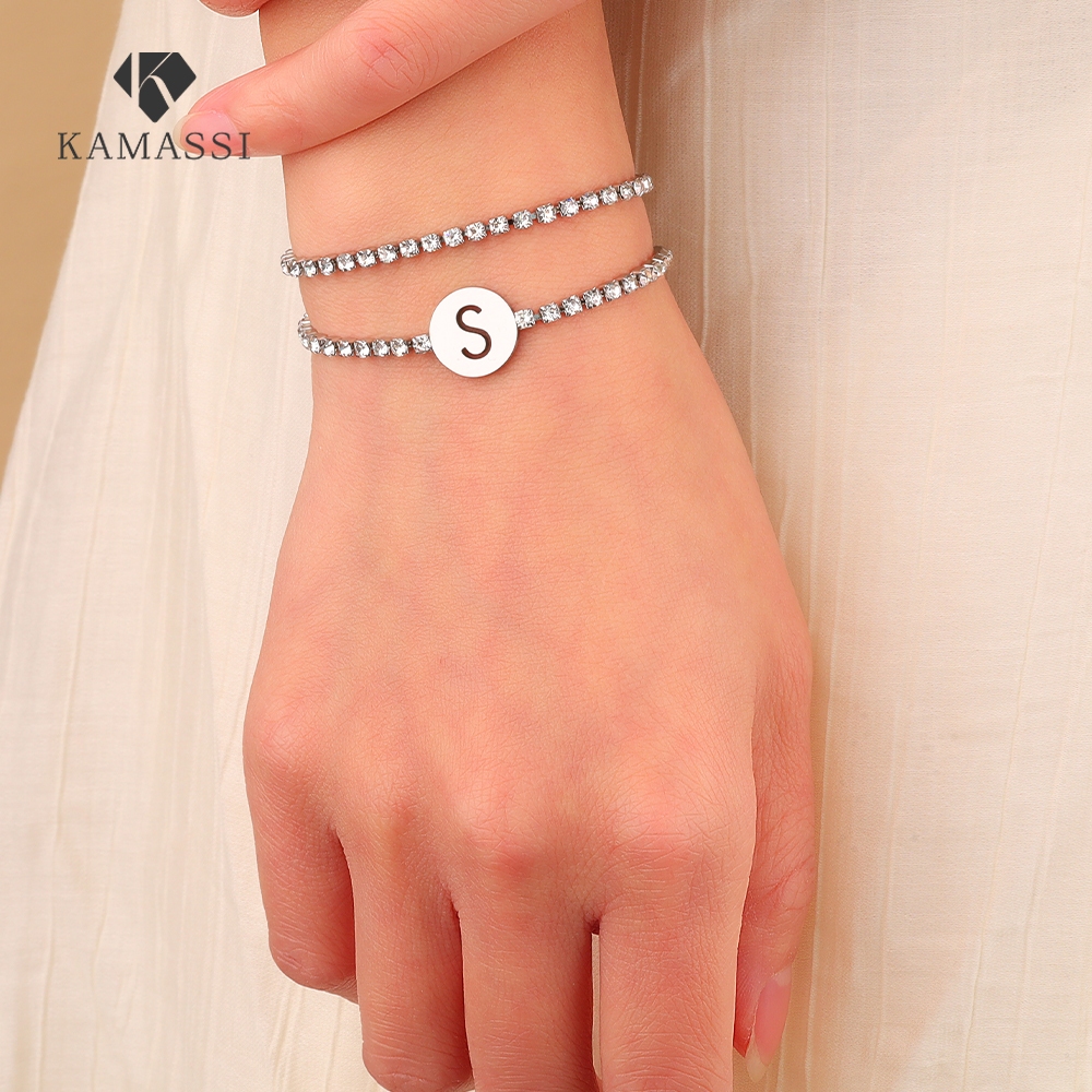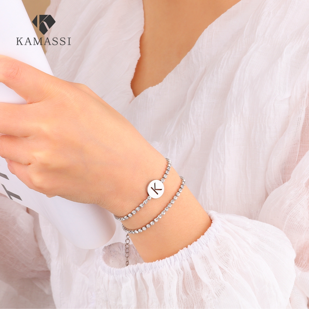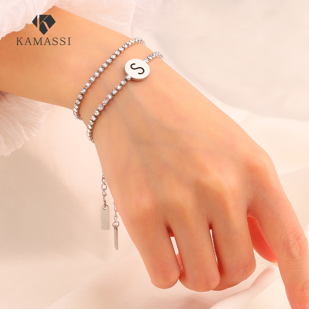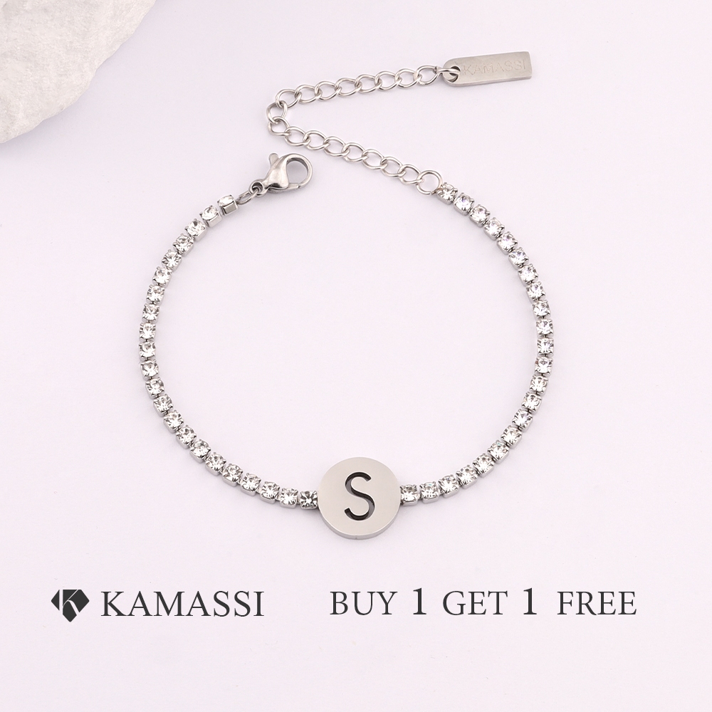 KAMASSI Buy 1 Get 1 Free Stainless Steel Initial Letter Bracelet Hipoalergenik B2112-2