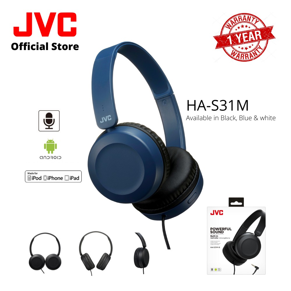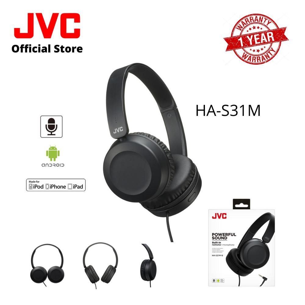 JVC HA-S31M Powerful Sound Headphones with Remote & Microphone