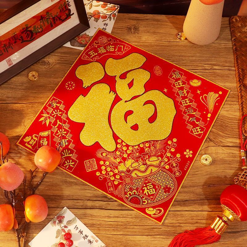 【READT STOCK】绒布福字贴自粘福字装饰新年春节过年贴纸福字门贴全背胶福字Flannel Fu Character Sticker Self-adhesive Fu Character Decoration New Year Spring Festival20260113