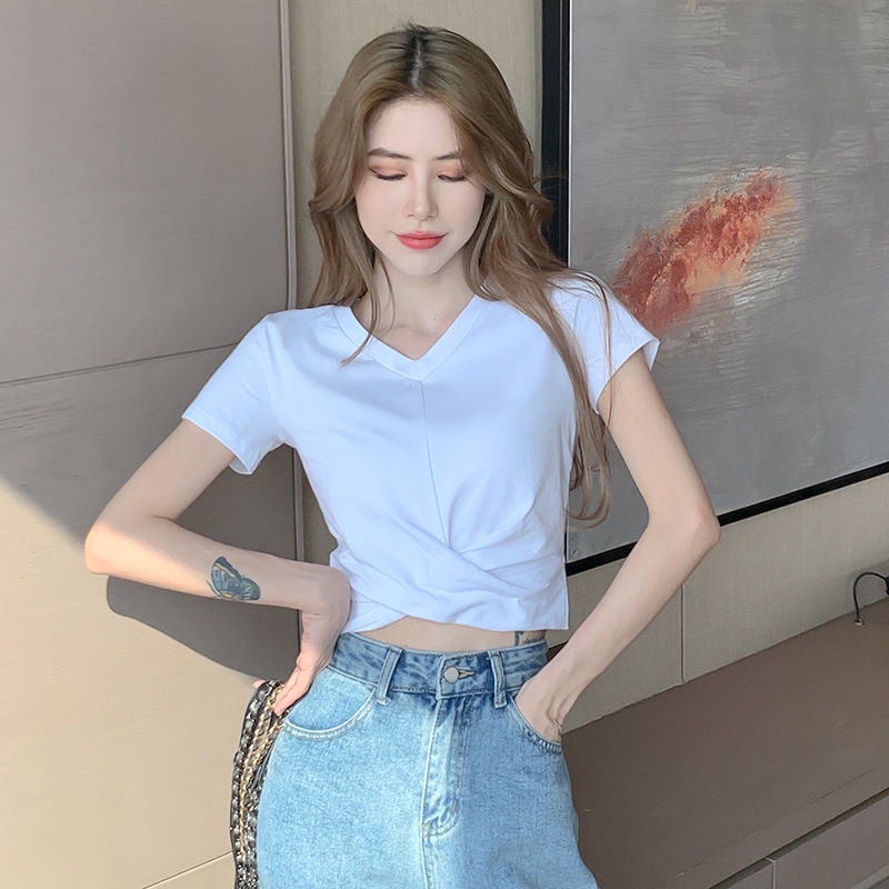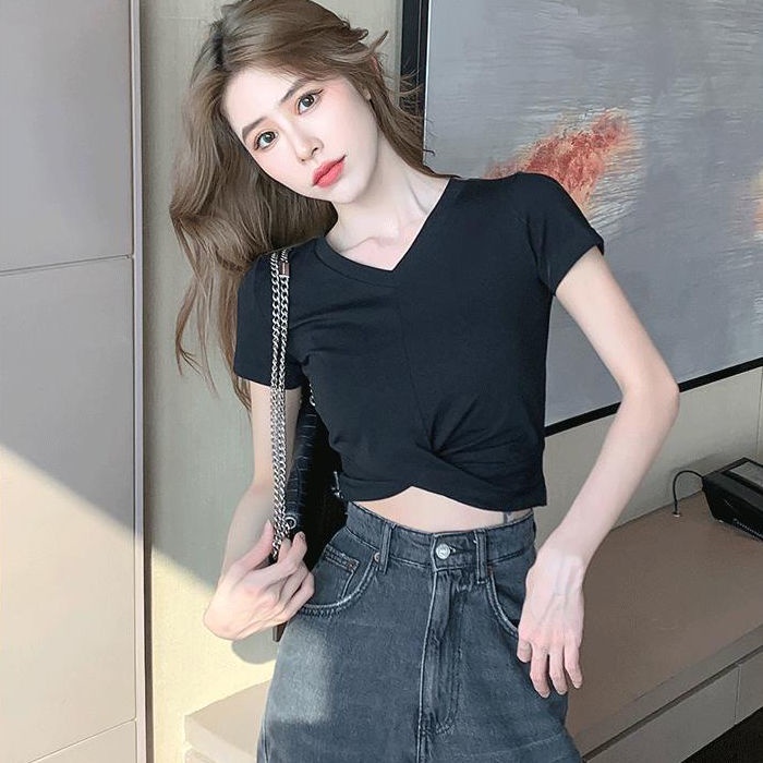 Cotton Short-Sleeve crop top VSexy Tight Navel Exposed Female Short T-shirt