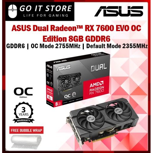 ASUS Dual Radeon RX 7600 OC Edition 8GB GDDR6 Graphics Card (DUAL-RX7600-O8G)