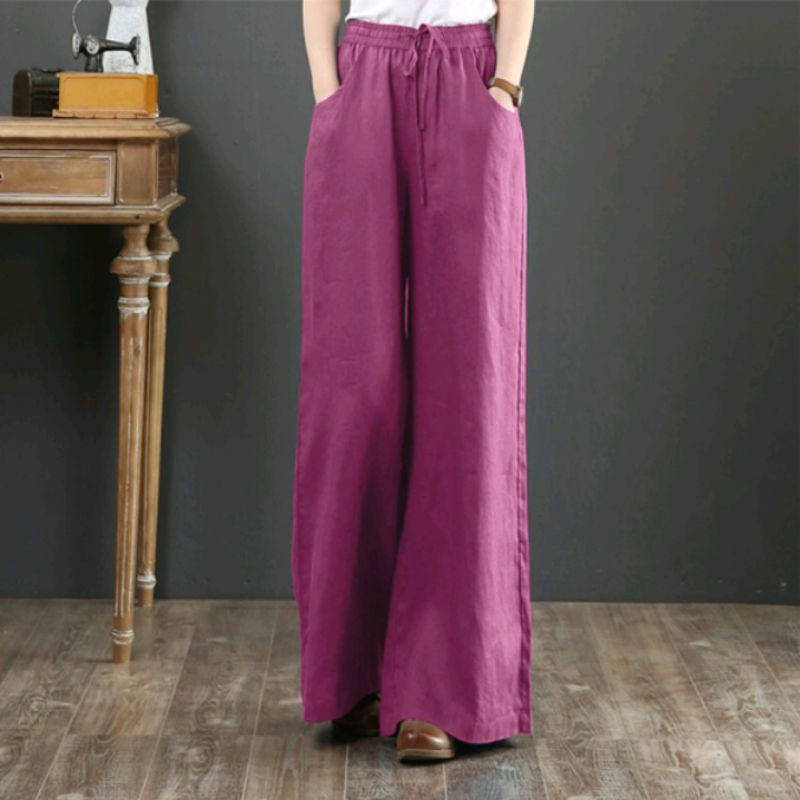 PALAZO Women Casual Wide Legs Elastic Belted Solid Color Long Pants