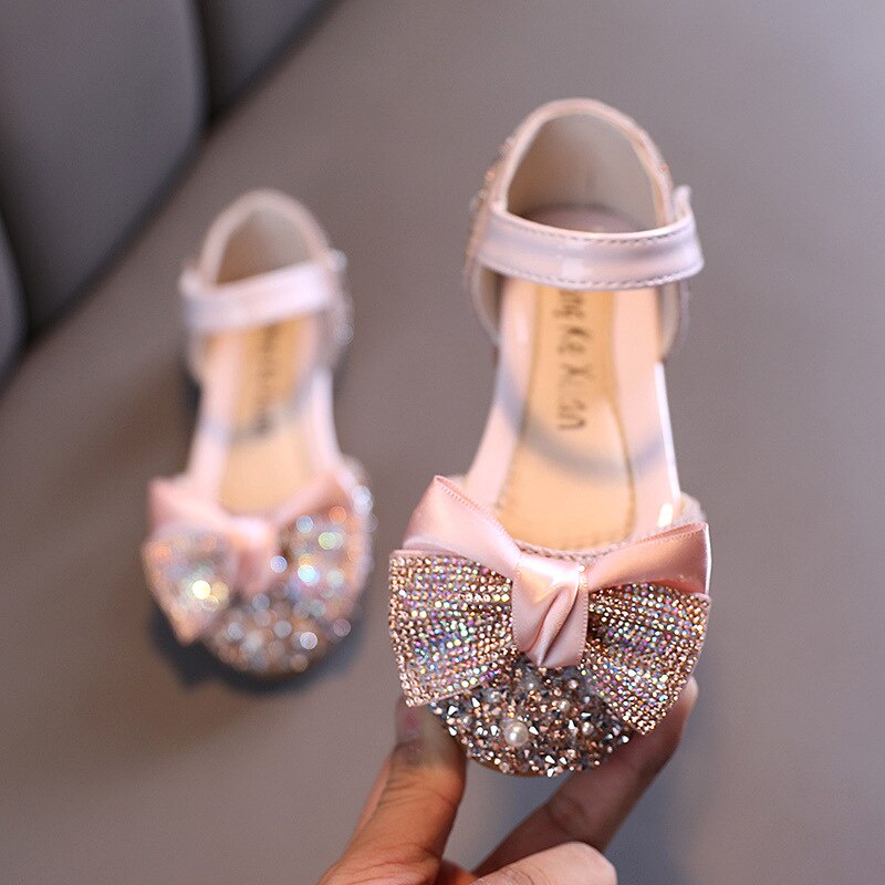 Fashion Summer Girls Sandals With Bow Princess Party Girls Shoes Soft Flat Casual Rhinestone Kids Shoes