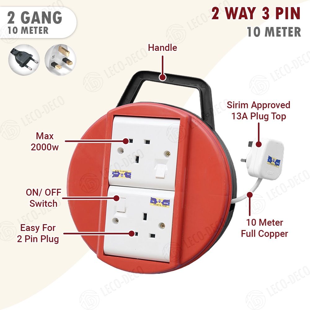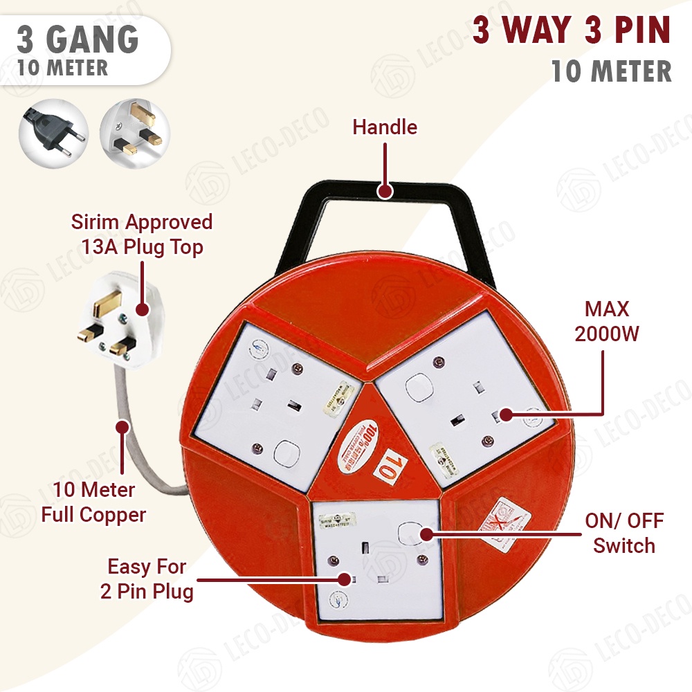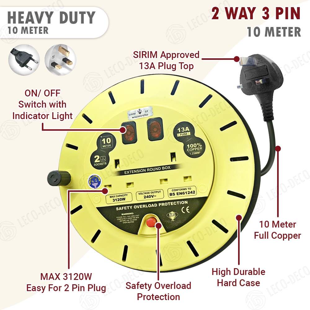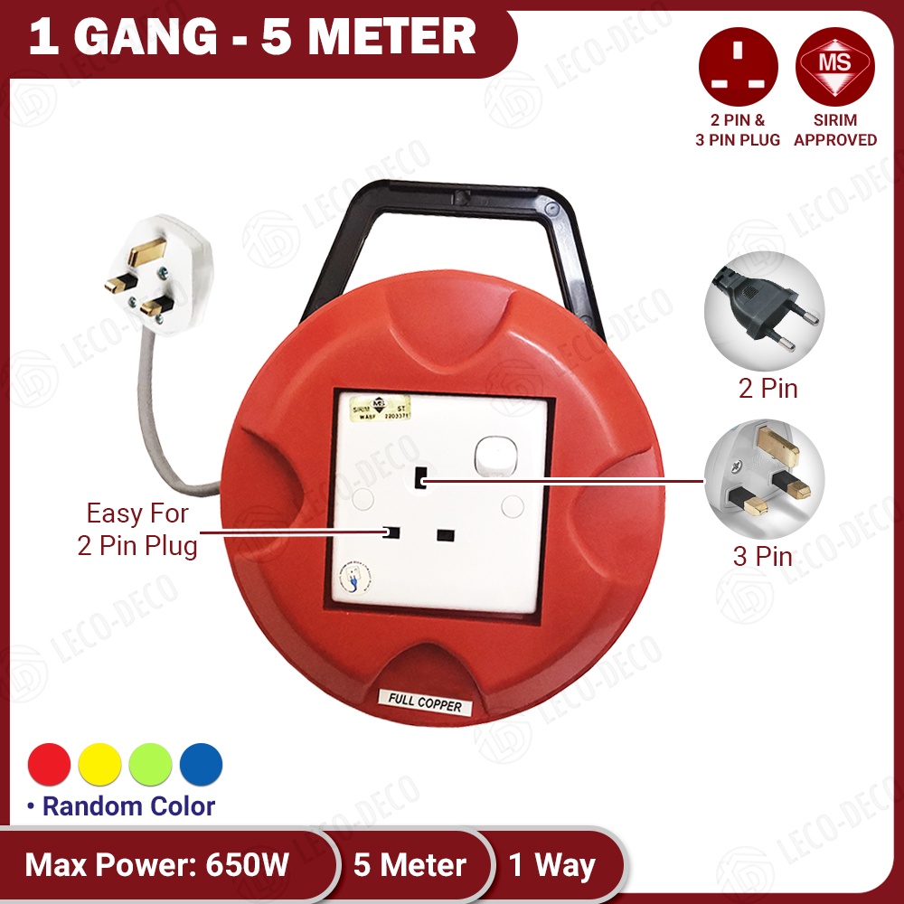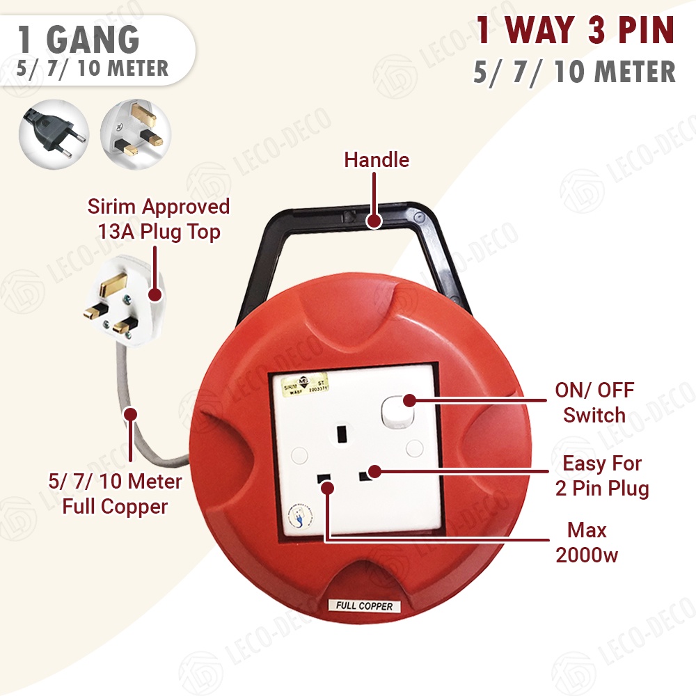 SIRIM EXTENTION BOX ROUND EXTENSION TRAILING SOCKET ADAPTOR CABLE 5 7 10 M METER 100 FULL COPPER ROLLBOX WIRE REEL