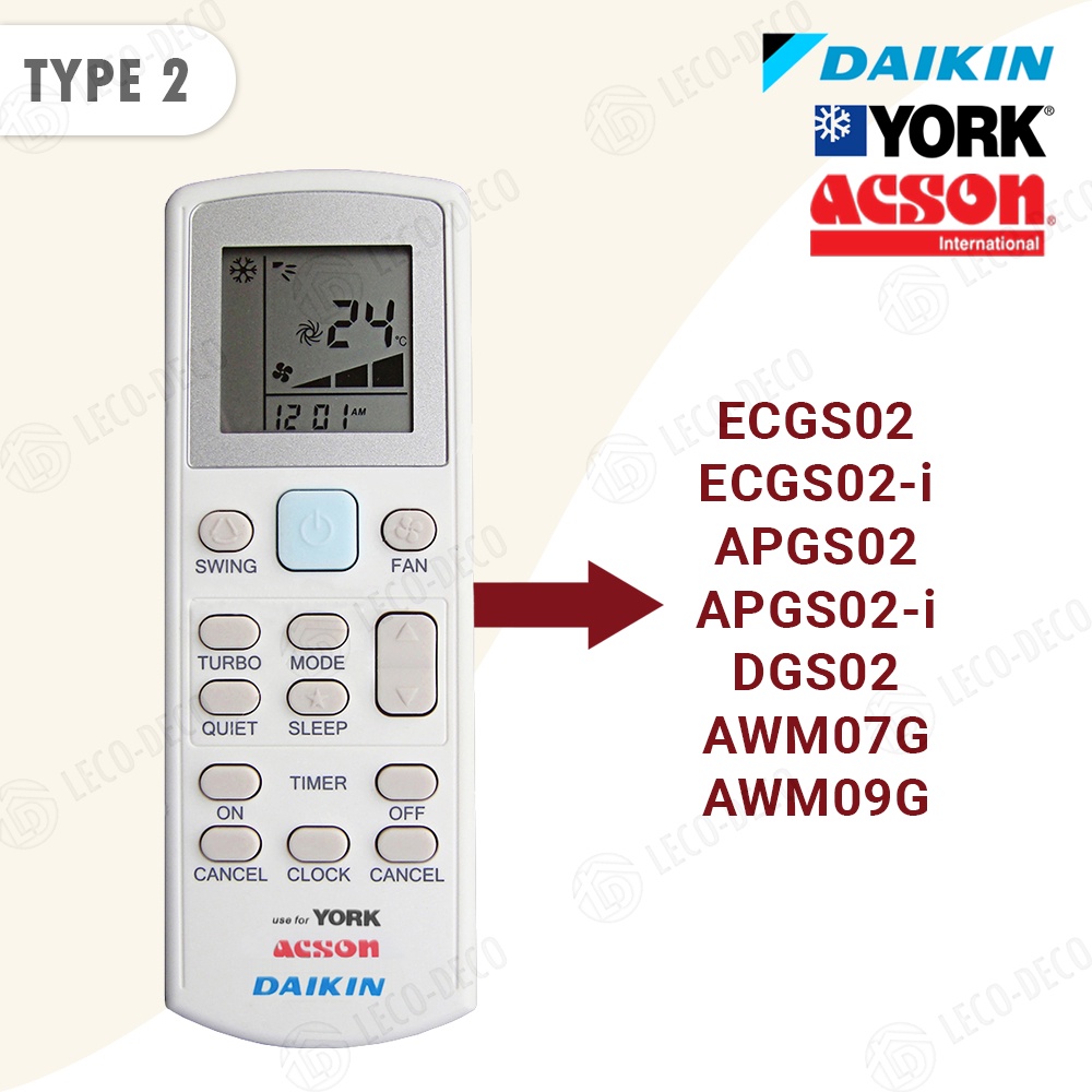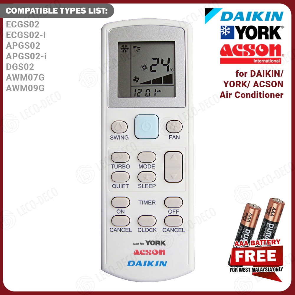 Daik!n York Acson Air Cond Aircond Conditioner D@ikin Remote Control Alat Kawalan Jauh Remot DGS01 ECGS01 APGS02 ECGS02