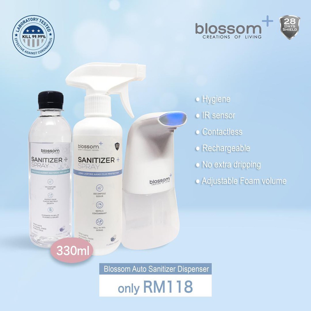 BLOSSOM Sanitizer Dispenser Alcohol-free Auto Sensor + 330ml + 330ml LITE【Value Set】(SIRIM certified)