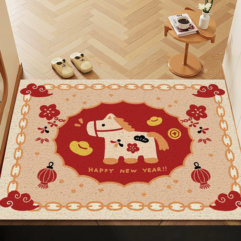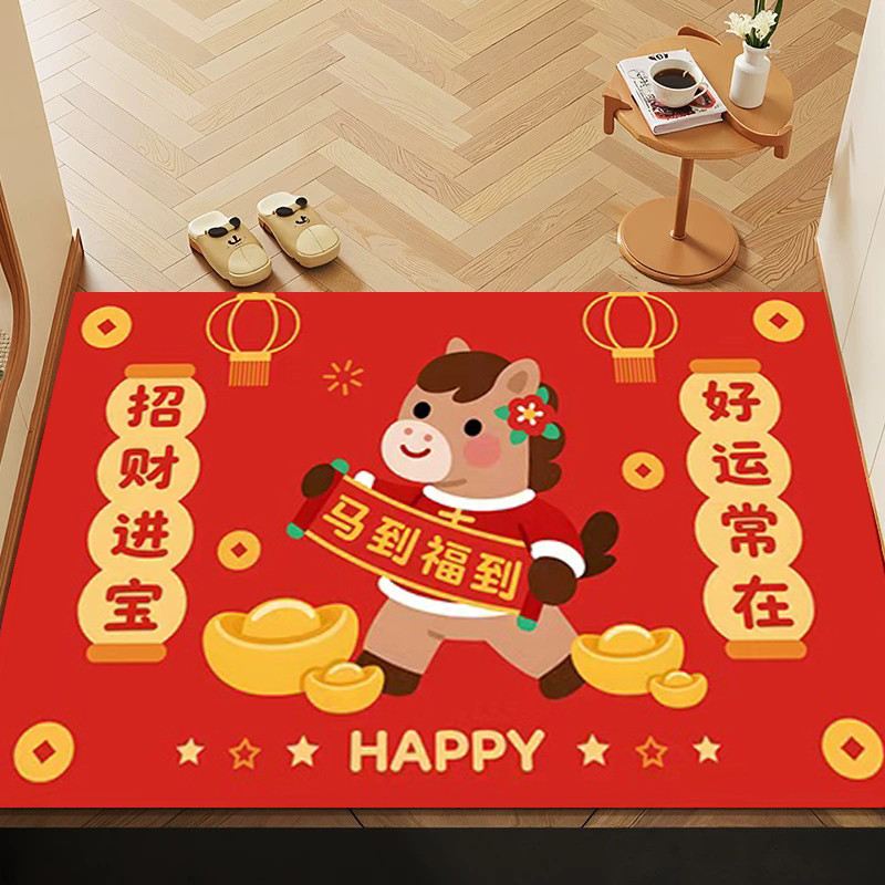 2026 Spring Festival Floor Mat Cartoon Cute Horse Pattern Carpet Anti-slip Door Pad New Year Home Supplies