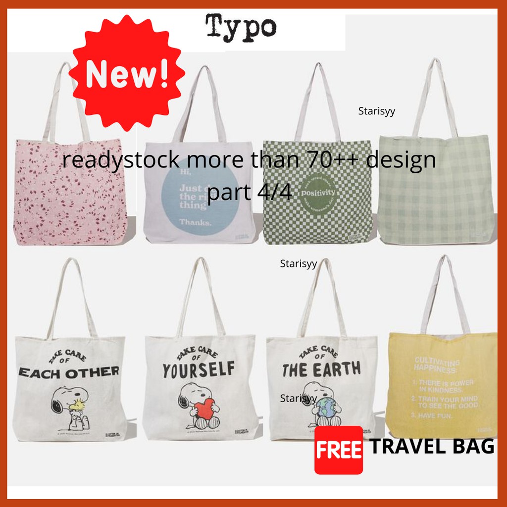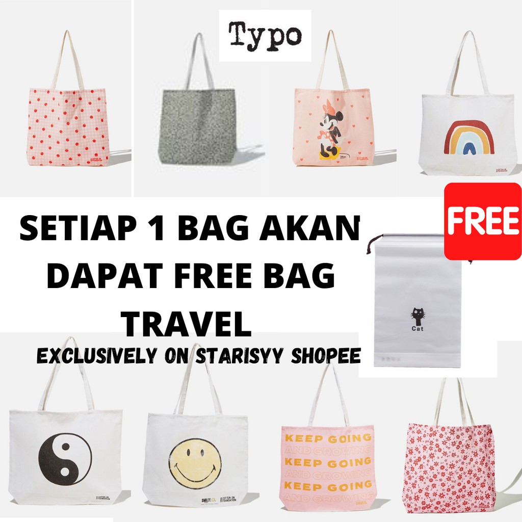 Cotton On Totebag Typo Tote Bag FOUNDATION with free gift. PART 4/4