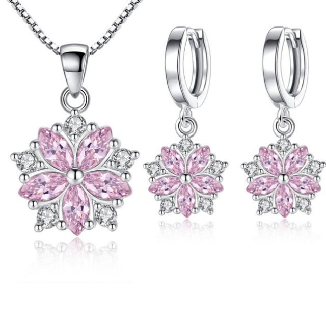 925 Silver Women Necklace Earring Set Ear Hook Rantai Subang Jewelry Gift Set