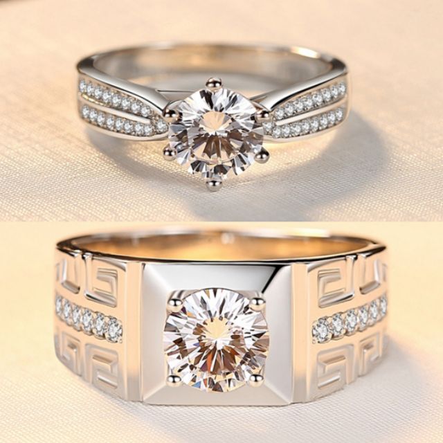 Cincin Perak 925 Pasangan Nikah Tunang Permata Cantik Lelaki Prempuan couple Ring Silver Men Women Rings Adjustable Size