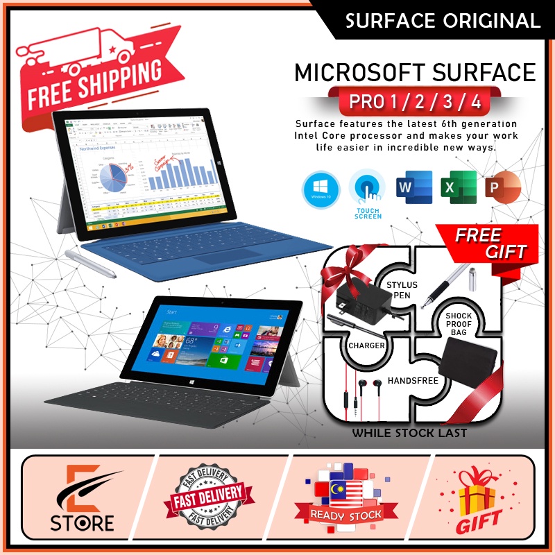 [ORIGINAL] Windows Microsoft Surface Pro 1/2/3/4 Intel M3/i3/i5/i7 Used 95% look new Ready in Malaysia Free Shipping