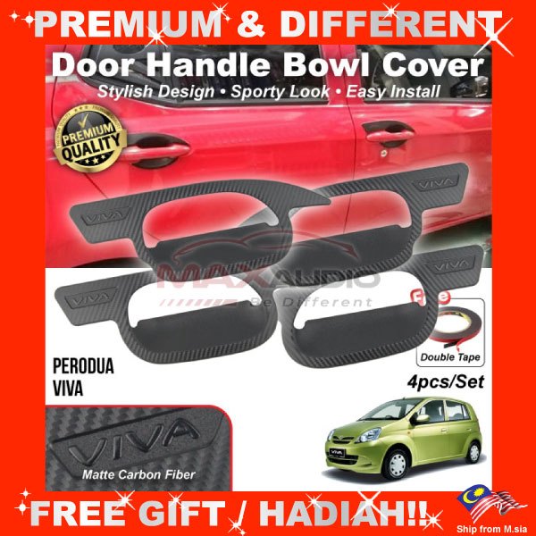 Car Door Handle Protector PERODUA VIVA Matte Black Carbon Red Logo Bowl Cover Sticker Trim