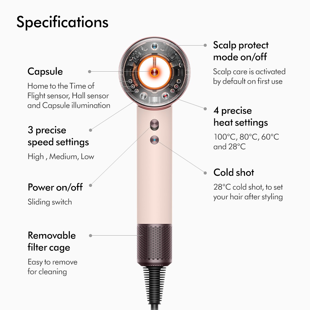 Dyson Supersonic Nural ™ Hair Dryer HD16 (Ceramic Pink) |Scalp protection | Powerful & Fast drying| Pengering Rambut