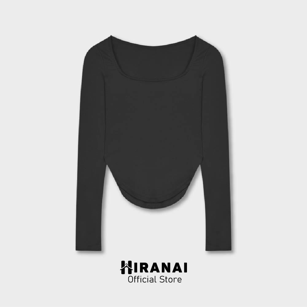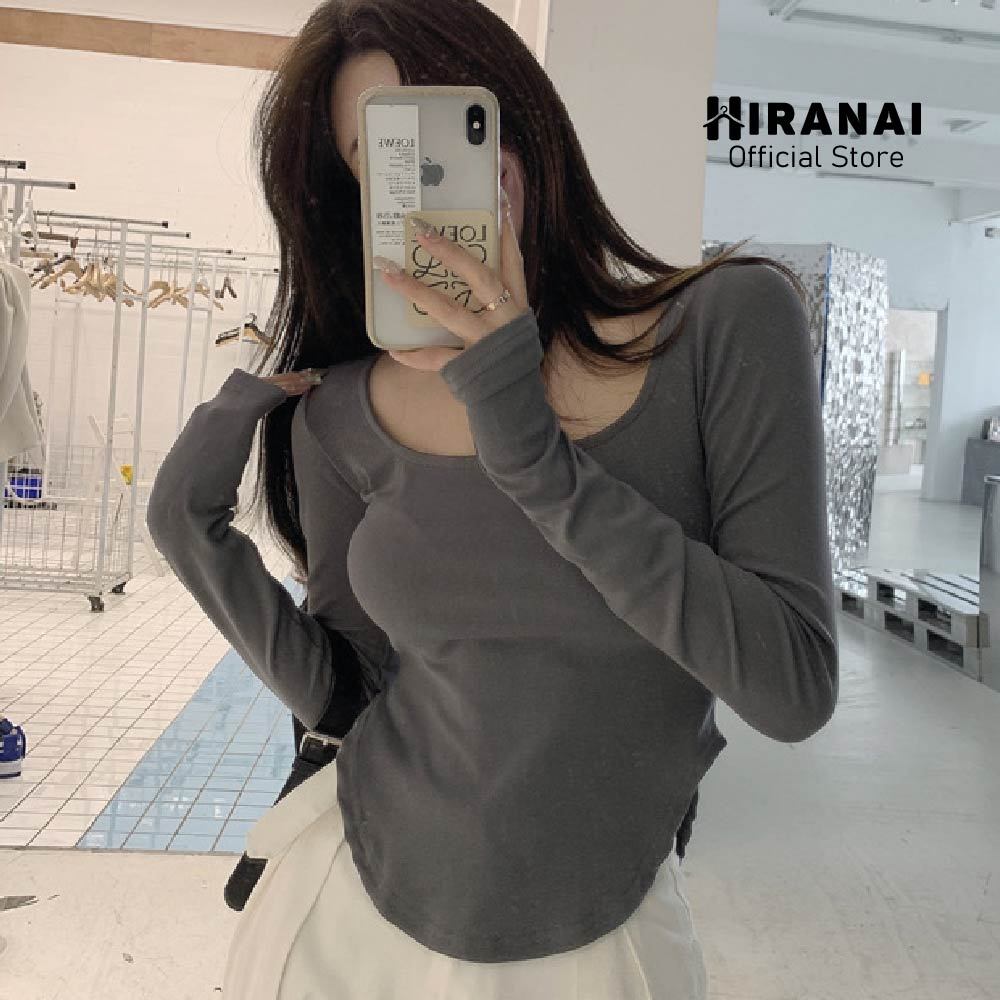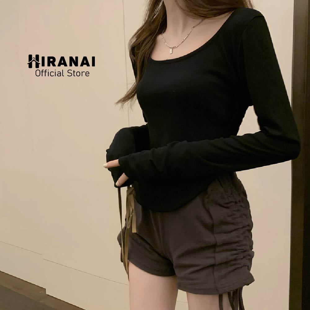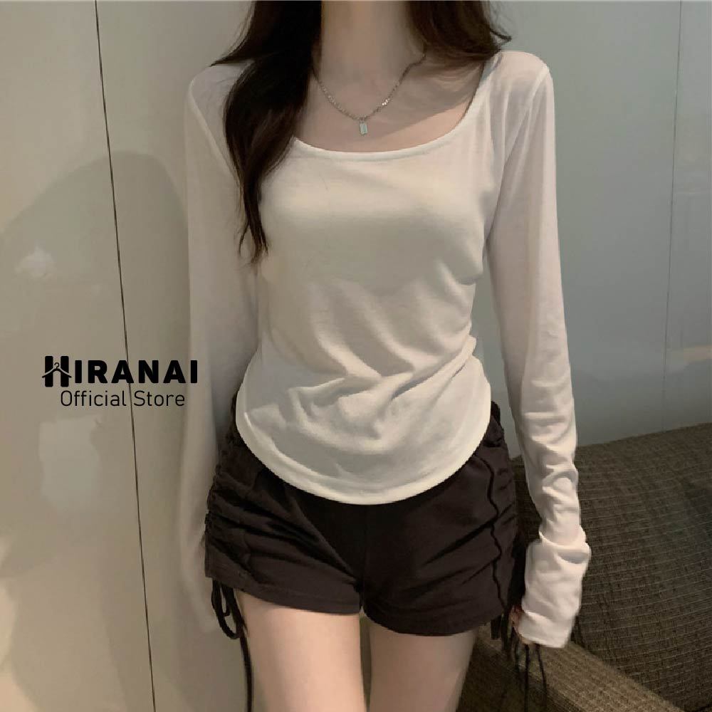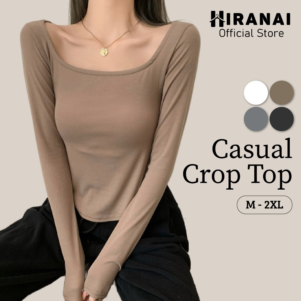 Long Sleeve Crop Top Lengan Panjang Cotton Shirt Women Baju Perempuan Style Korean Plain T-Shirt Women Square Neck Top