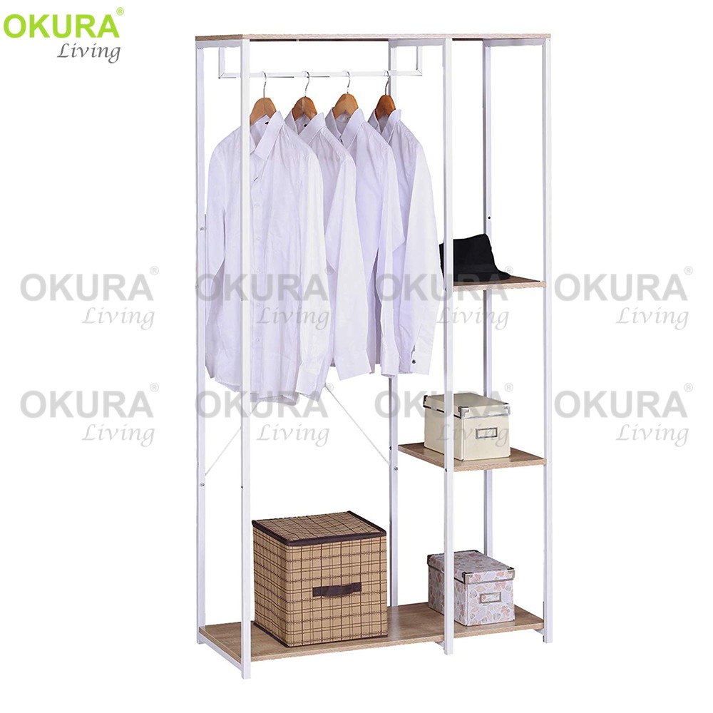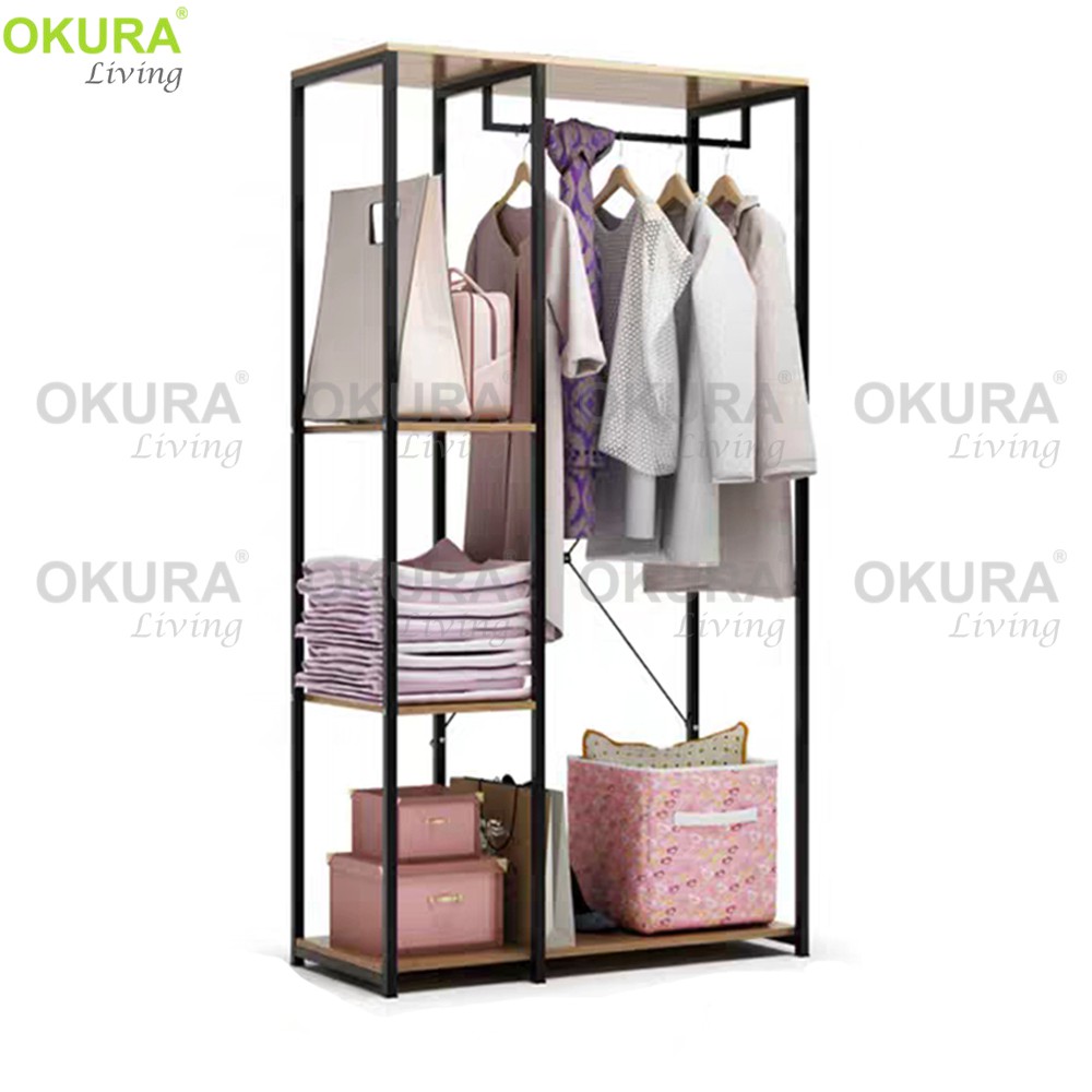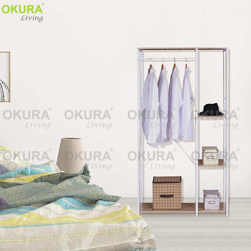 OKURA (Bigger Size 167x90x41CM) 3 Tier Open Wardrobe Shelf Cabinet Hanger Modern Home Living Almari Ampaian Baju Rak