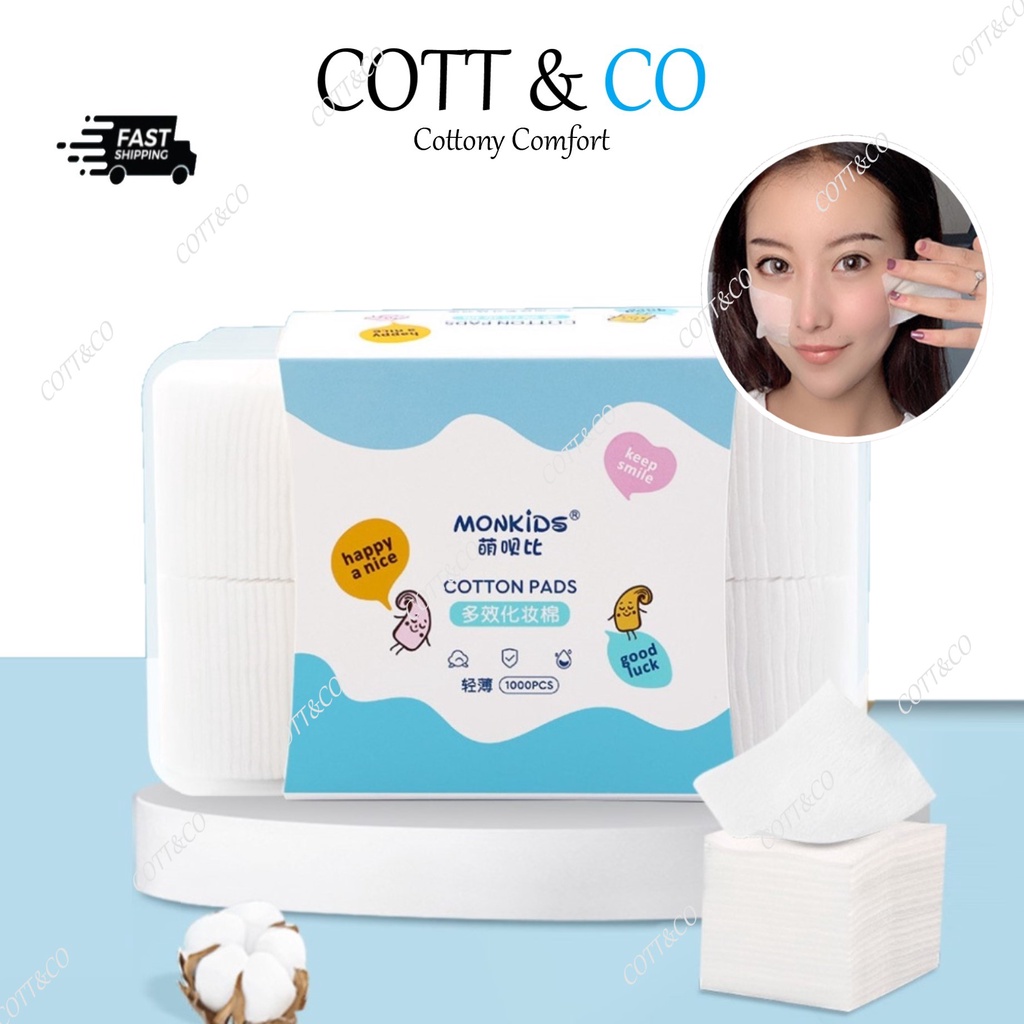 [MONKIDS 萌呗比] 1000pcs Ultra Thin Cotton Pads / Highly Absorbent / Lint-free / All skin Type