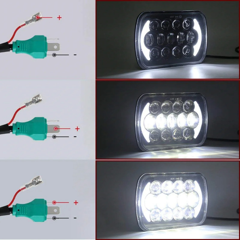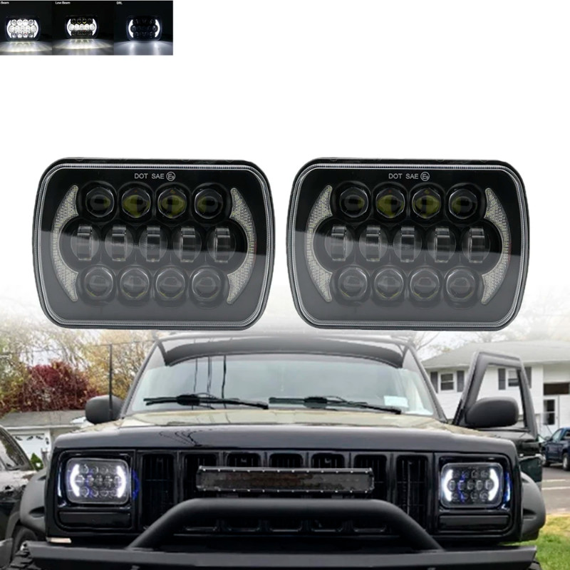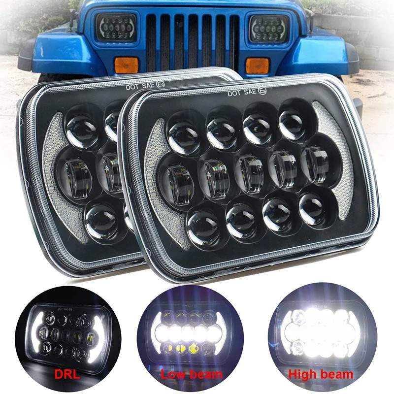 Universal 7x6 "5X7" LED Hi-Lo beam Square headlights White DRL For Jeep Cherokee XJ Wrangler YJ Motocross H6054 H5054