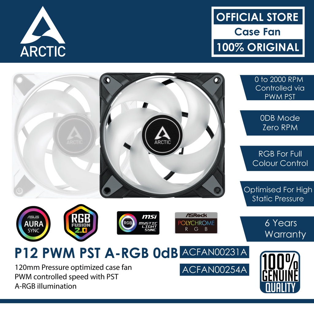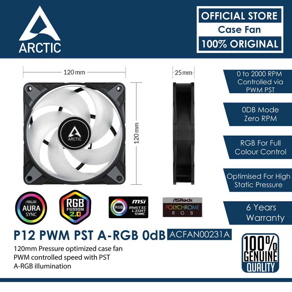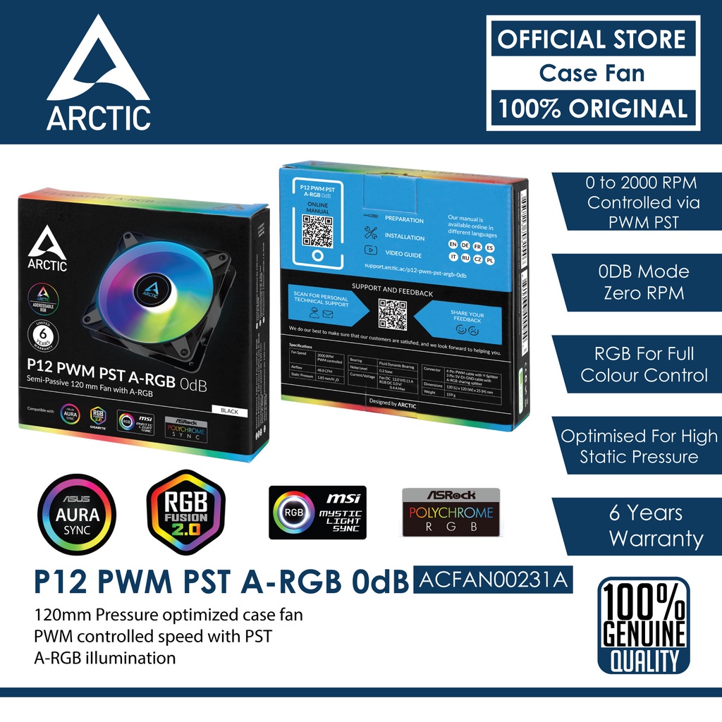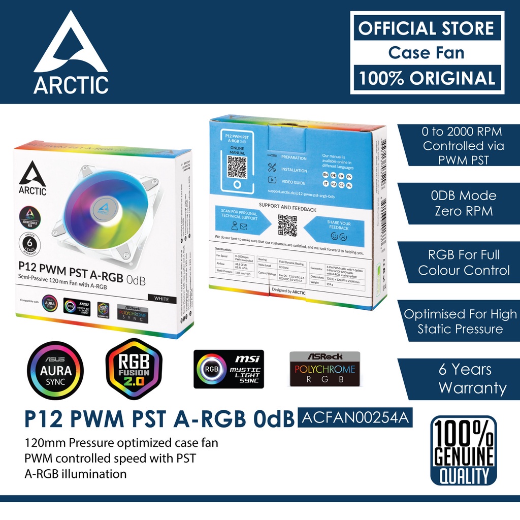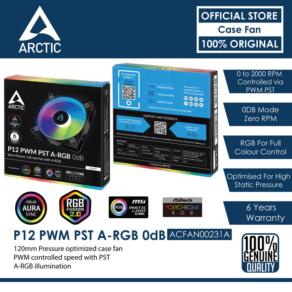 ARCTIC P12 PWM PST A-RGB 0dB Pressure optimized Case Fan & PWM Controlled Speed with PST (120mm) ACFAN00231A