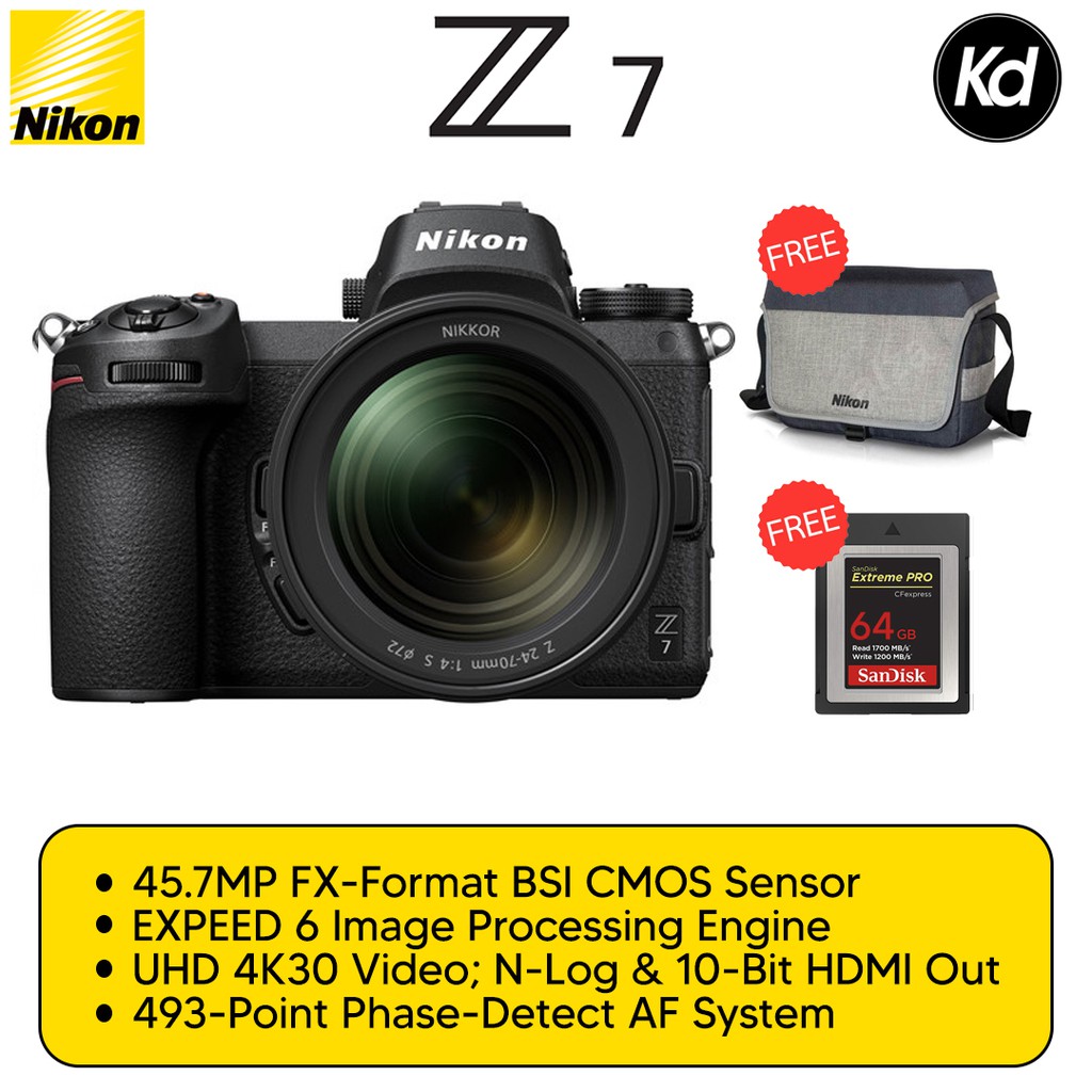 Nikon Z7 / Z 7 Mirrorless Digital Camera with 24-70mm Lens (Nikon Malaysia Warranty)