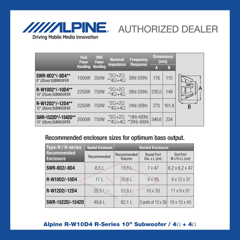 ALPINE Car Audio R-W10D4 R-SERIES 10 inch Subwoofer DUAL 4 Ohms