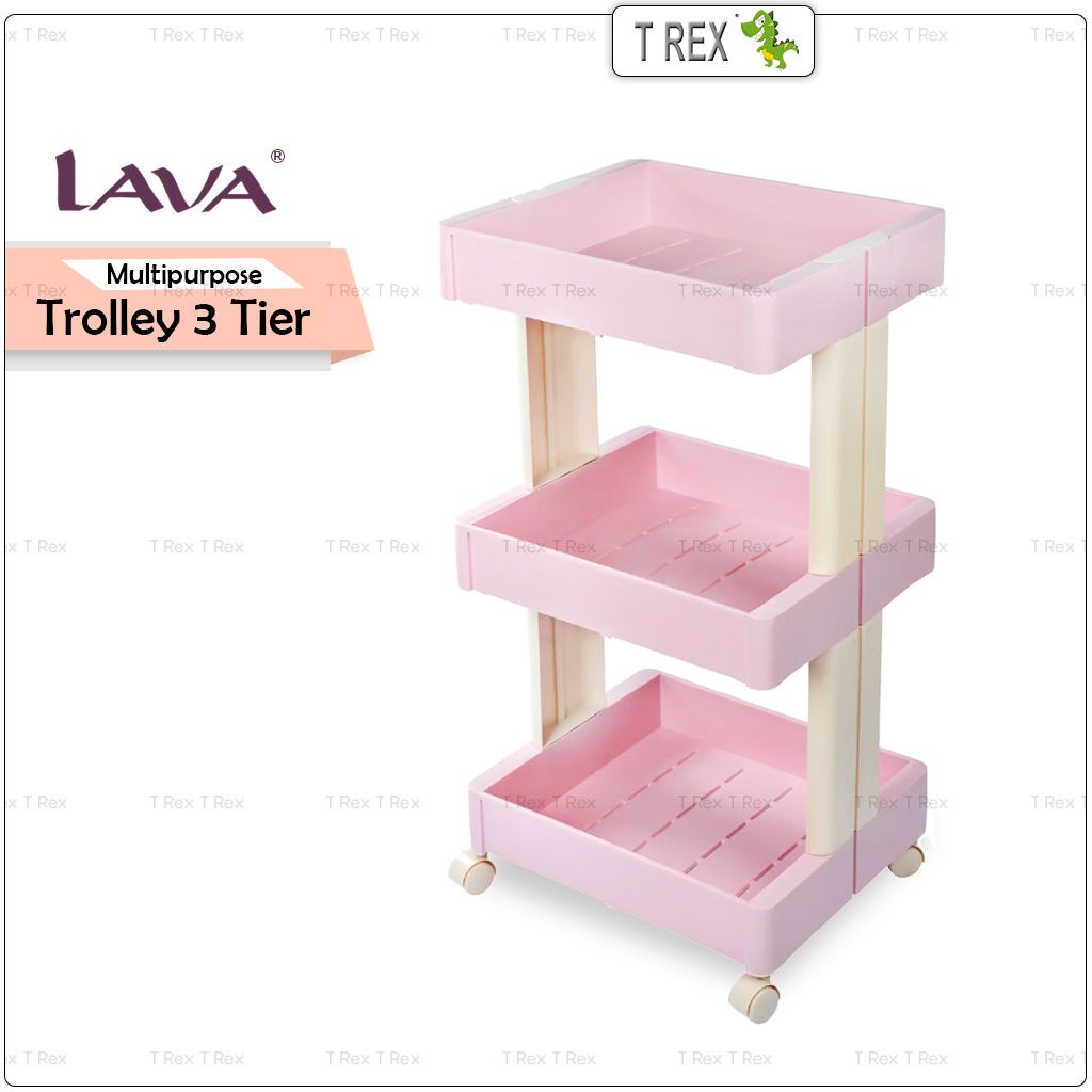 Lava Multipurpose Trolley 3 Tier Pink / Plastic Rack with Wheels / Troli Rak Beroda Rak Penyimpanan