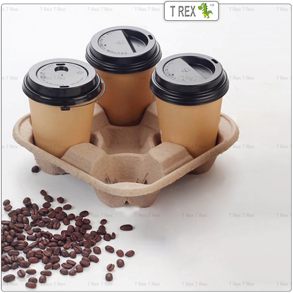 One Stop Disposable Pulp Molded Paper Plastic Cup Holder Take Away Carrier Tray / Pemagang Cawan