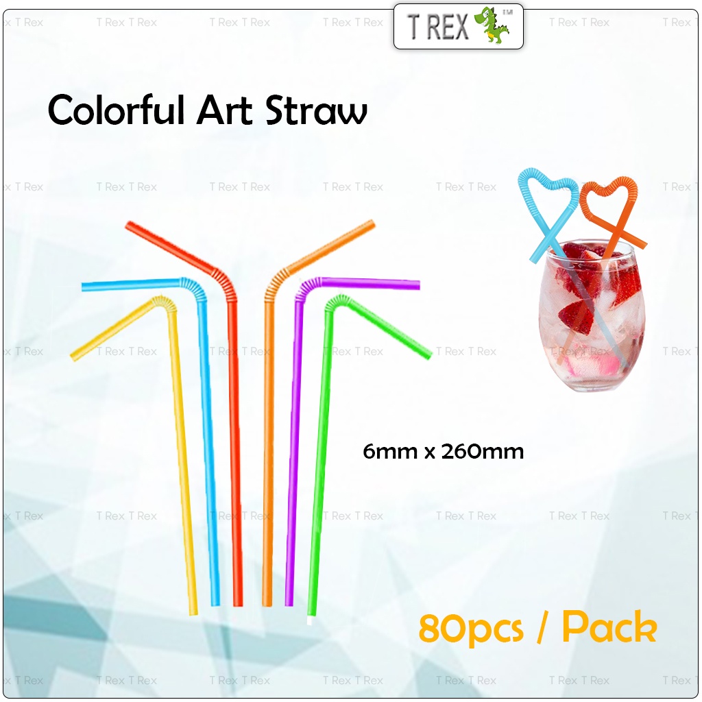 80pcs Flexible Art Straw 6mm x 260mm Colorful / Party Disposable Drinking Straws / Penyedut Minuman