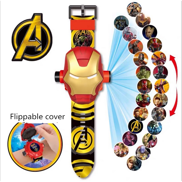 Digital Children Flippable Projection Watch Kids Sports Watches Spiderman Iron Man Captain America Batman Hulk