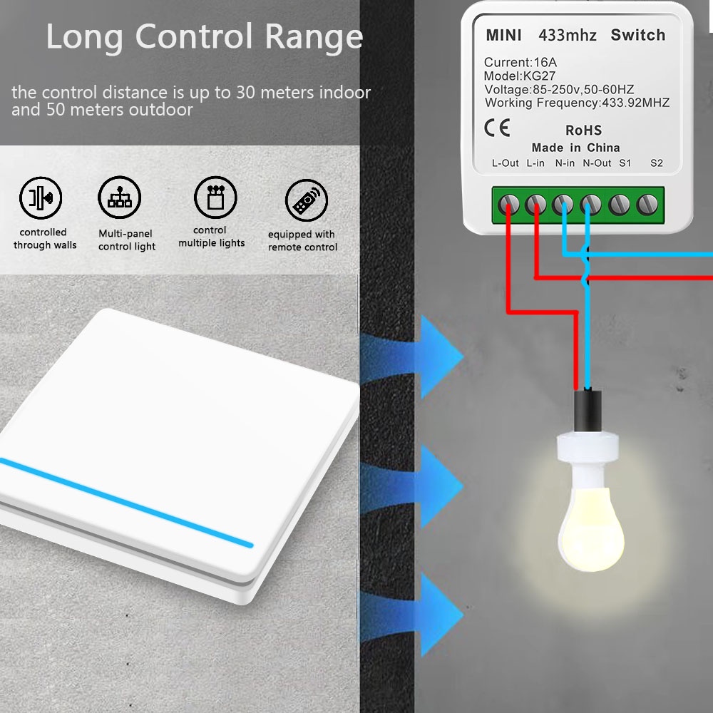 Wireless Push Button Switch 433mhz Rf Interruptor 16A 220V Mini Time Relay Support 2 Way Control Smart Switch Appliance