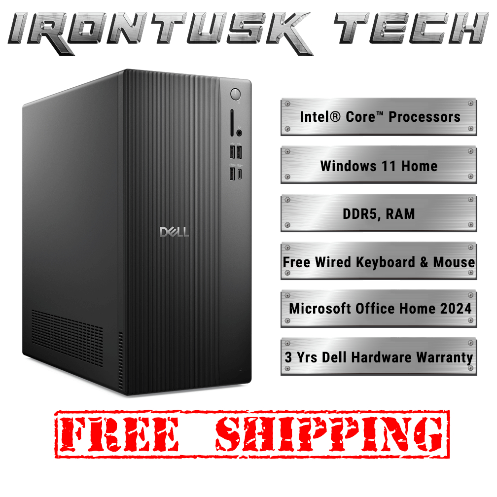 Dell ECT1250 Tower Desktop with Intel® Core™ CPU, DDR5 RAM, Windows 11, M.2 PCIe NVMe SSD - Free Shipping