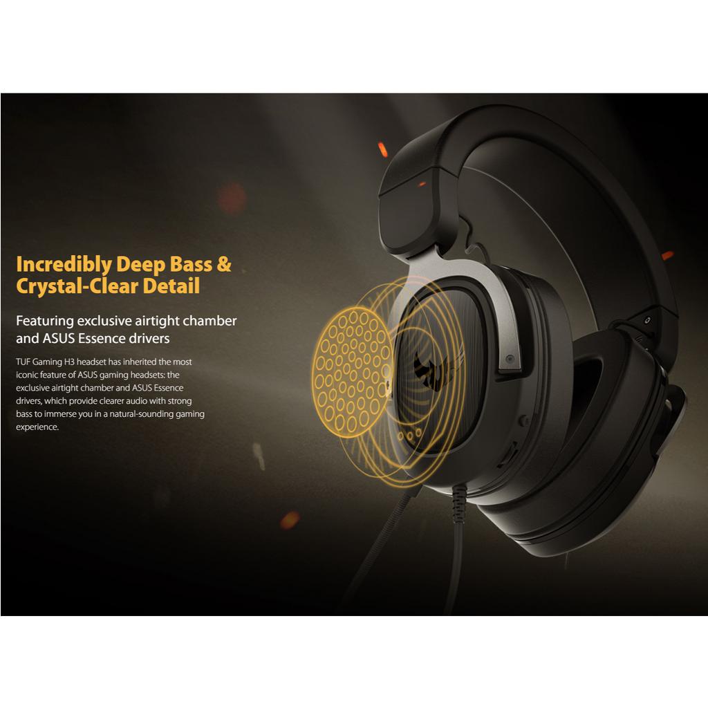 Asus TUF Gaming H3 headset (7.1 surround sound, deep bass, lightweight design, fast-cooling ear cushions)