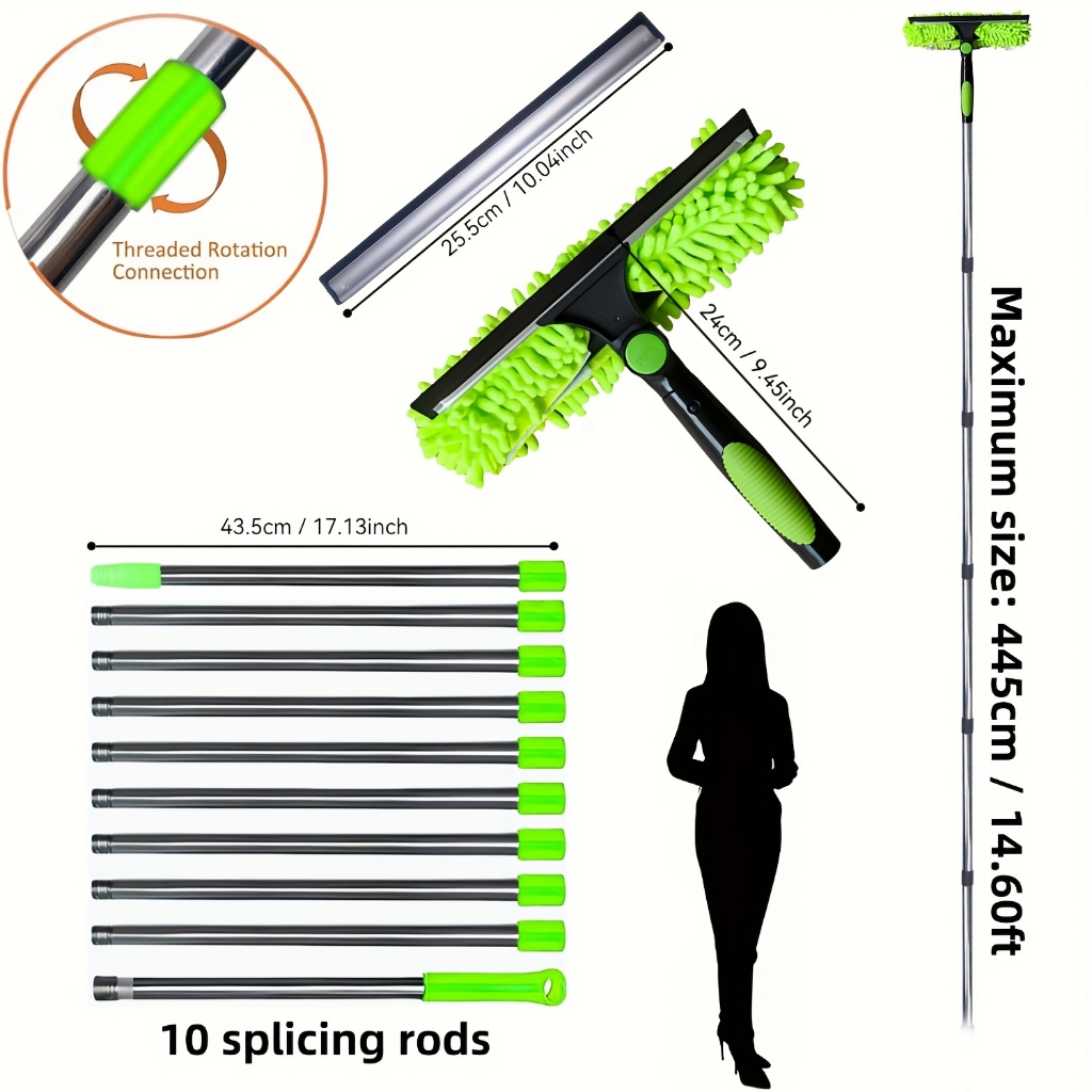 445cm Window Squeegee Cleaning Washing Tool Kit with Extension Pole 2 in 1 Squeegee for Window Cleaning Kit for High Window